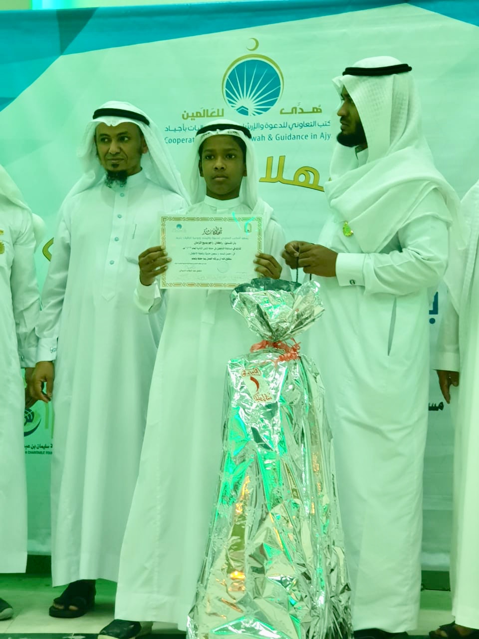 كرّم المكتب التعاوني للدعوة والإرشاد وتوعية الجاليات بأجياد المشاركين في مسابقة حفظ المتون العلمية، والتي تأتي بدعم من مؤسسة سليمان بن عبد العزيز الراجحي الخيرية، والتي أقيمت في صيف العام المنصرم.