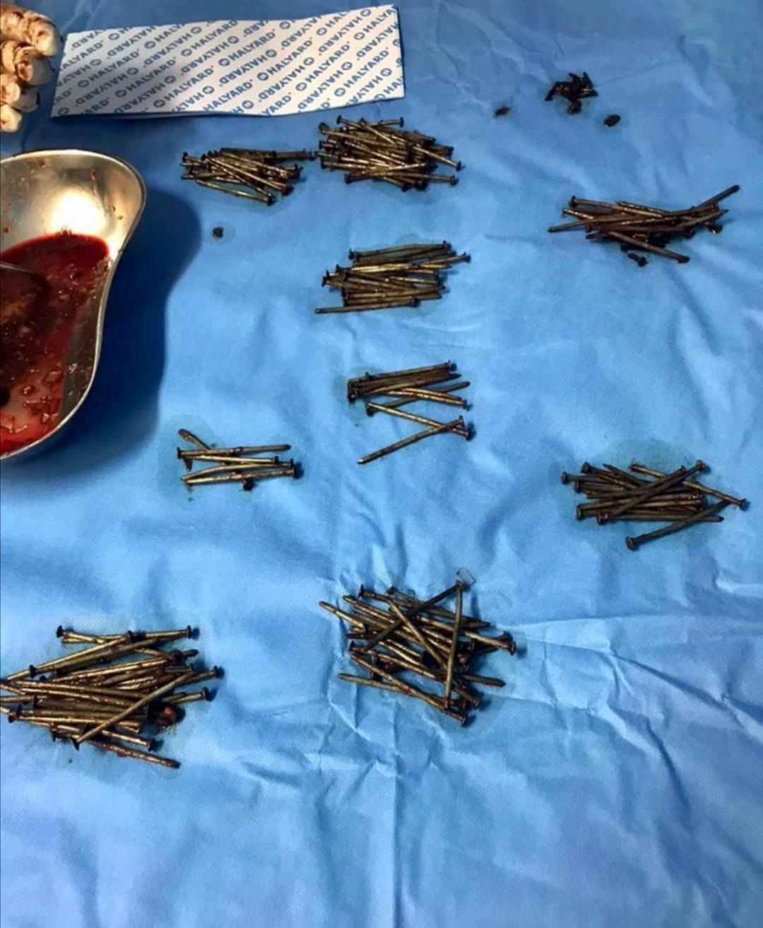 تمكن فريق طبي في مستشفى بجدة من إنقاذ حياة مريض نفسي بعد استخراج عدد 230 مسمار وقطع من الزجاج من بطنه.