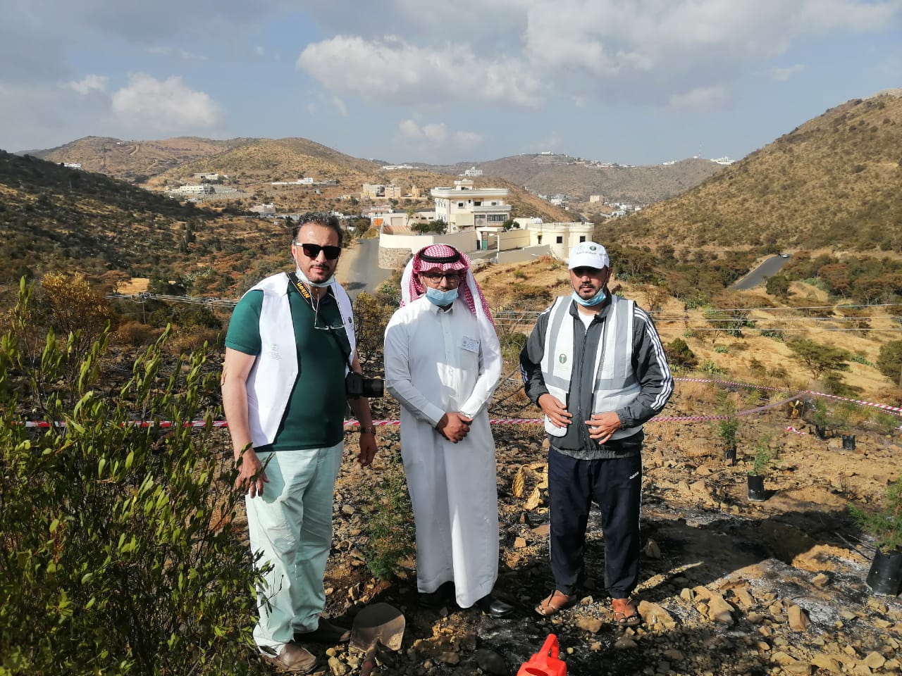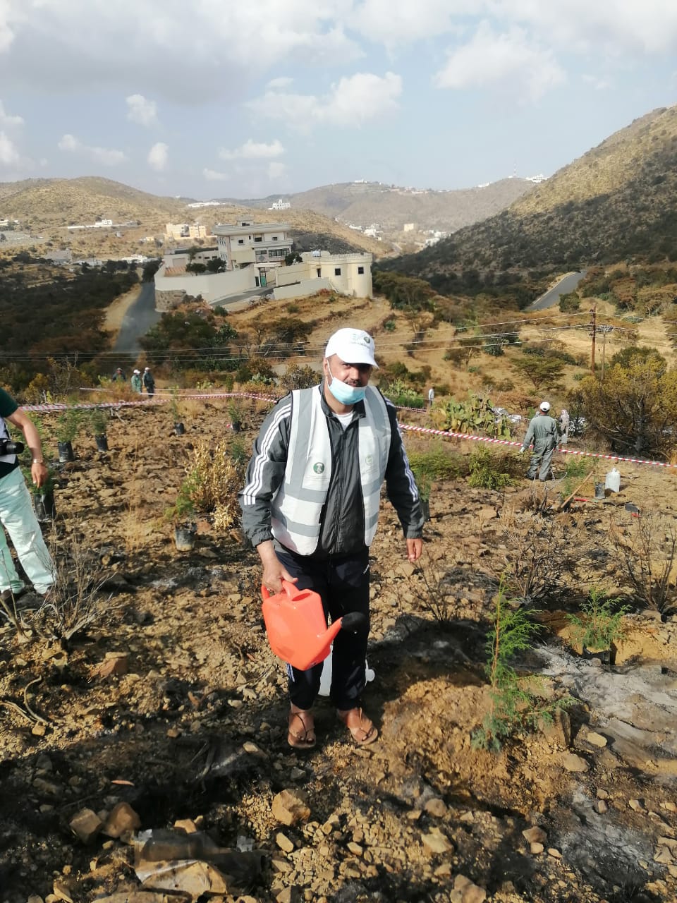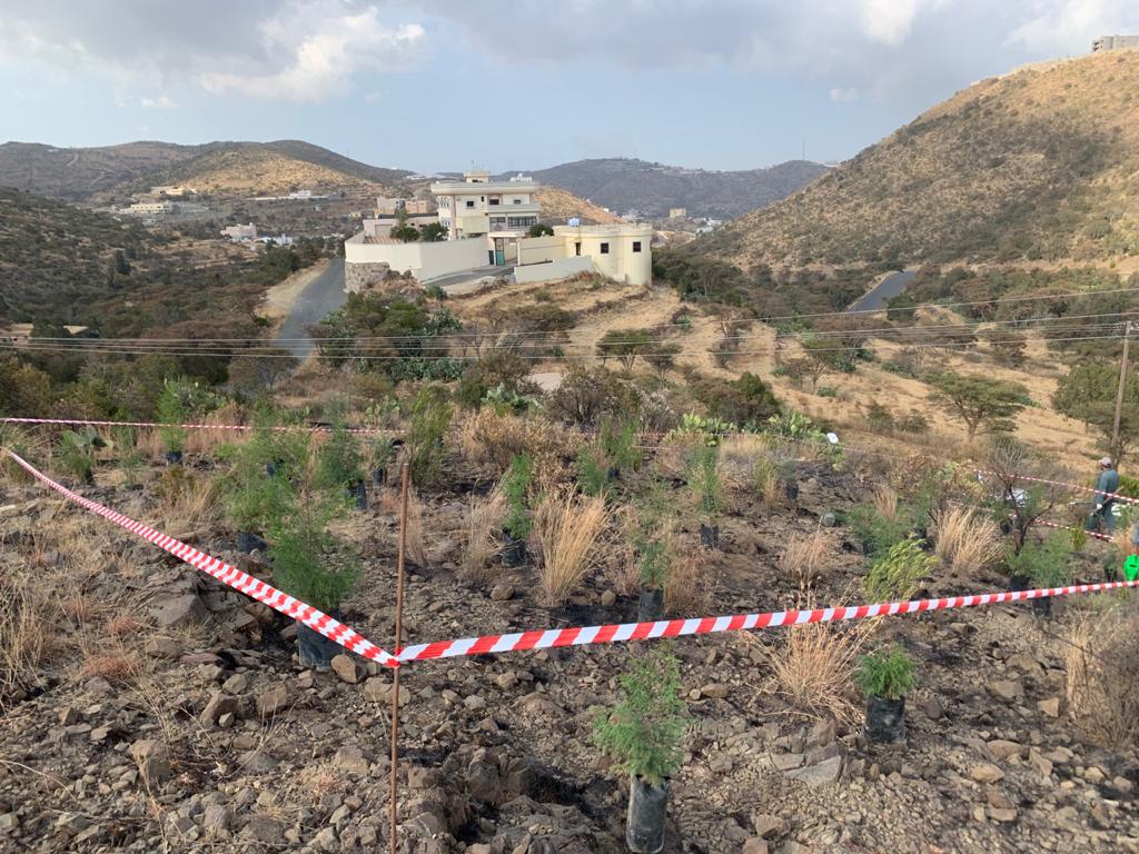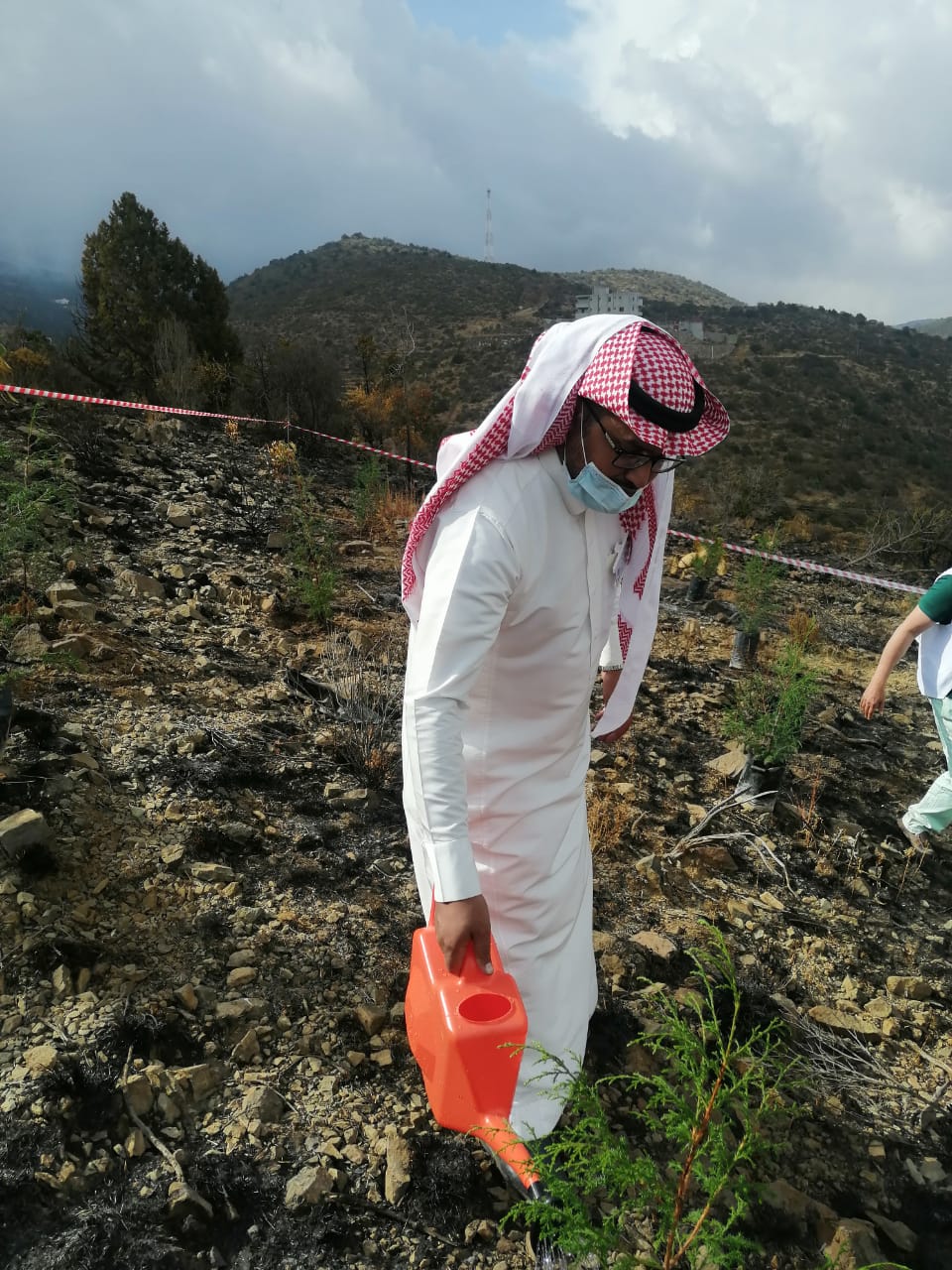وفي هذا الاطار قام مدير ادارة الغابات والتشجير المستشار قتيبة بن حمود السعدون بالوقوف على موقع حريق غابة جبل آل مفرح يرافقه مدير ادارة البيئة المهندس اسماعيل الشهري بفرع الوزارة بمنطقة عسير وبمتابعة من سعادة الدكتور خالد العبدالقادر الرئيس التنفيذي للمركز الوطني لتنمية الغطاء النباتي ومكافحة التصحر ومدير عام فرع الوزارة بمنطقة عسير المهندس عبدالله بن حسن الويمني ، وقد درس الفريق سبل اعادة تأهيل الغطاء النباتي في المواقع المتضررة وأجرى فحصاً ظاهريا لطبيعة تربة وجيولوجية الموقع لوضع التصور المناسب لاعادة تنمية الغطاء النباتي فيها وتم عمل مسيجين لتجارب اعادة استزراع الاشجار والنباتات التي تعرضت للحرائق ومراقبة حيويتها وكذلك لرصد التغير والتعافي الطبيعي لهذه الغابة وإزالة آثار الحريق حيث قام الفريق بزراعة حوالي ١٥٠ شجرة عرعر وبعض شجيرات الشث والحشائش المستديمة ، و تتيح تلك الدراسة الميدانية ايجاد التصور لمتطلبات اعادة تأهيل كامل الموقع واستكشاف نسب الترب الصالحة للاستزراع وطبيعة توزيعها في الموقع ومن ثم الآليات المناسبة لاعادة الغطاء النباتي نظرا لوعورة الجبل وقلة المواقع القابلة للحفر اللازم لزراعة الشتلات فيها ، وقد تم ري النباتات التي تم زراعتها يدويا حيث تم الصعود بالمياه الى سفح الجبل وتبرع بتأمين المياه لدراسة التأهيل التجريبية المواطن المتعاون يحي احمد مشيبة احد مجاوري موقع الحريق الذي استعد بتقديم كل الدعم لجهود الوزارة في أعادة تأهيل الغابات المتضررة وثمّن الفريق هذا التعاون لدعم وتعزيز بيئة الوطن.