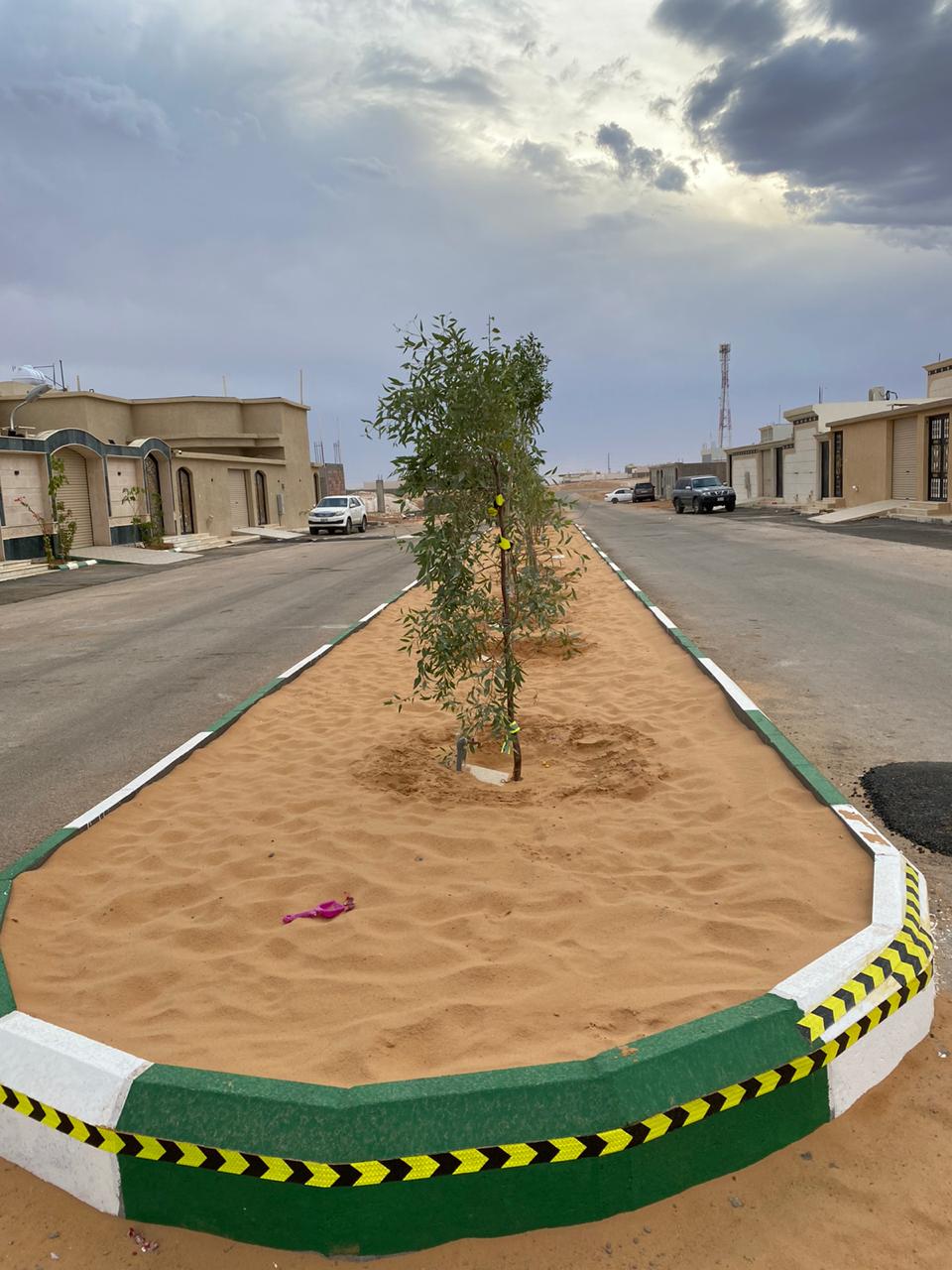 بالصور: مواطن ينفذ مبادرة تشجير وترصيف بشارع أمام منزل بروابي عرعر