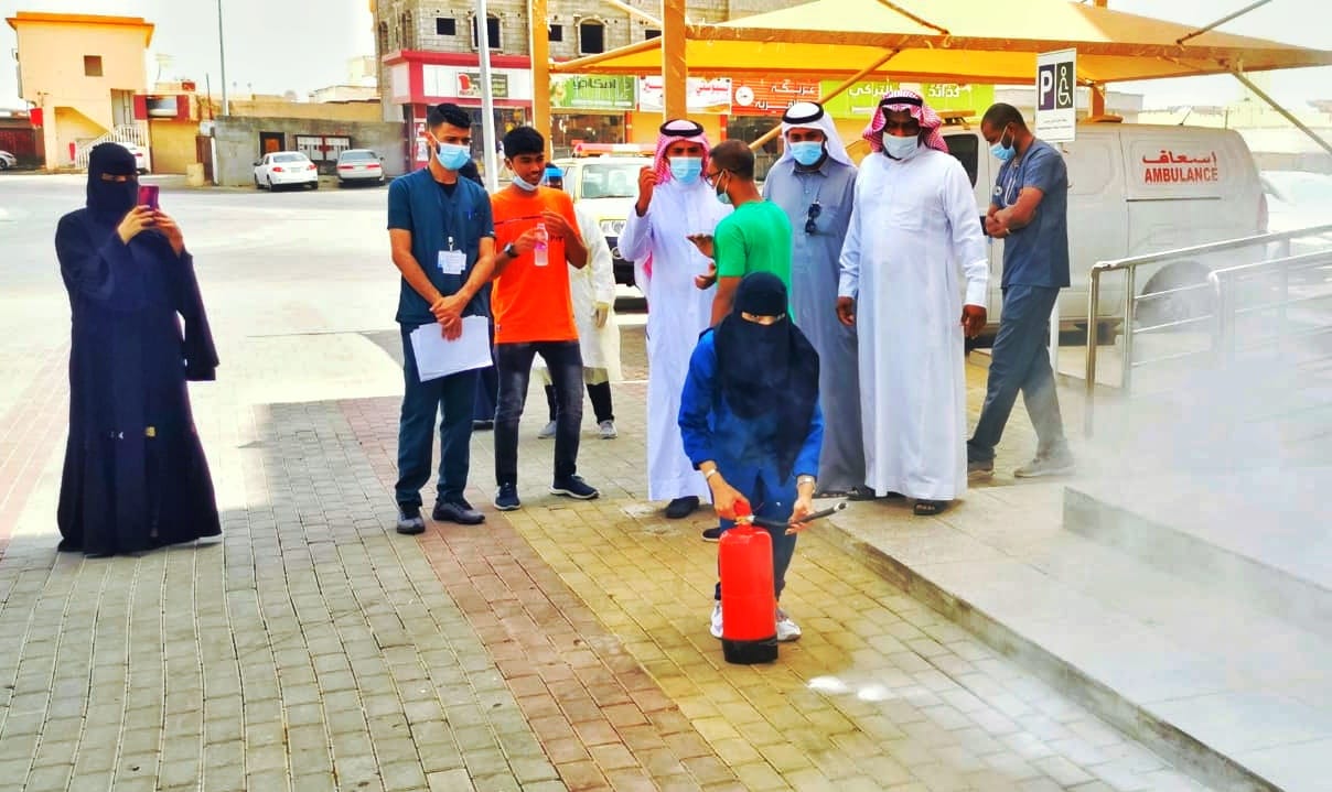 كمانفذ الفريق في الساحة الخارجيه للمجمع تجربة فرضية لحريق وهمي استمر لمدة 45دقيقة تحت اشراف مدير العمليات لتدريب الكوادر وتشجيعهم على كيفية التعامل مع نشوب الحريق لاسمح الله بكل حذر و تنظيم ودون اي خسائر في الارواح.