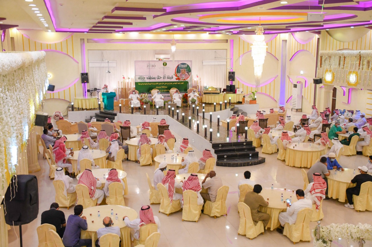 حيث أقيم الاحتفال بقاعة أرض إلقاء بمحافظة ابوعريش وبدأ الحفل بآيات من الذكر الحكيم بعد ذلك ألقى الدكتور راشد حلل كلمة نيابه عن أبناء القبيله