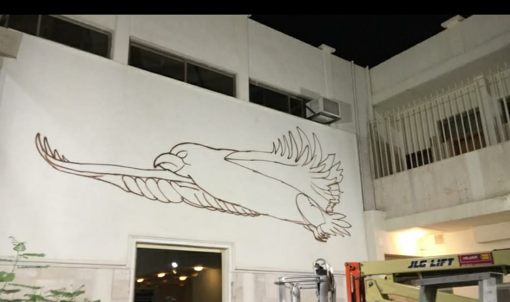 كما نشكر شركة -“( بدائل الايجار للمعدات المحدودة ) – التي ساهمت معنا و زودت الجمعية برافعة تأمن سلامة الرسامه للوصول إلى جدار الساحة المرتفع .