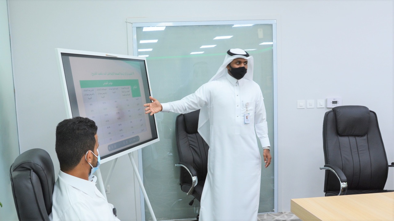 واستمع ” الحربي ” لشرح مفصل من مدير خدمات التمريض بصحة جازان الأستاذ بندر قحل، عن المبادرة وأهدافها وكل ما يخص العمل التمريضي بالمنشآت الصحية بالمنطقة.
