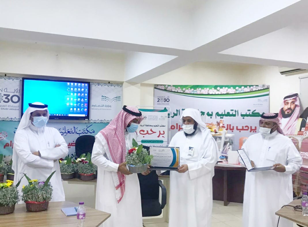 بعد تحقيق المركز الأول .. مدير مكتب التعليم بالريث يكرم قائد مجمع آل مشحنة التعليمي