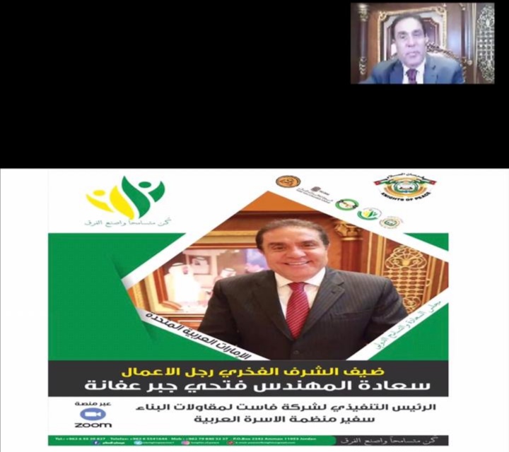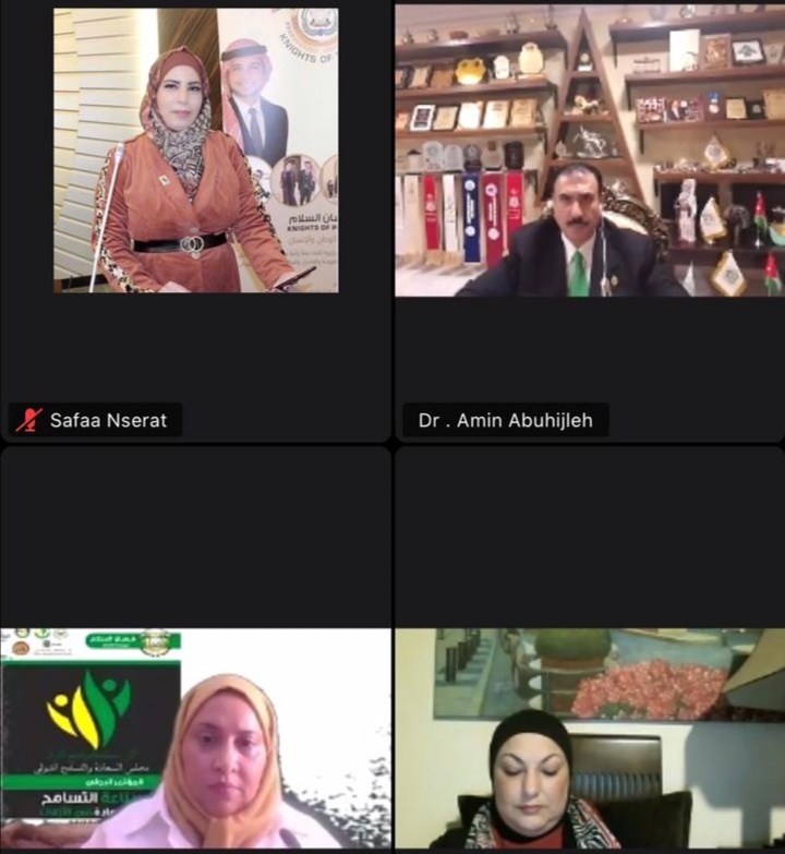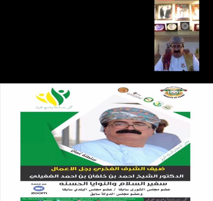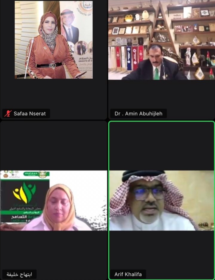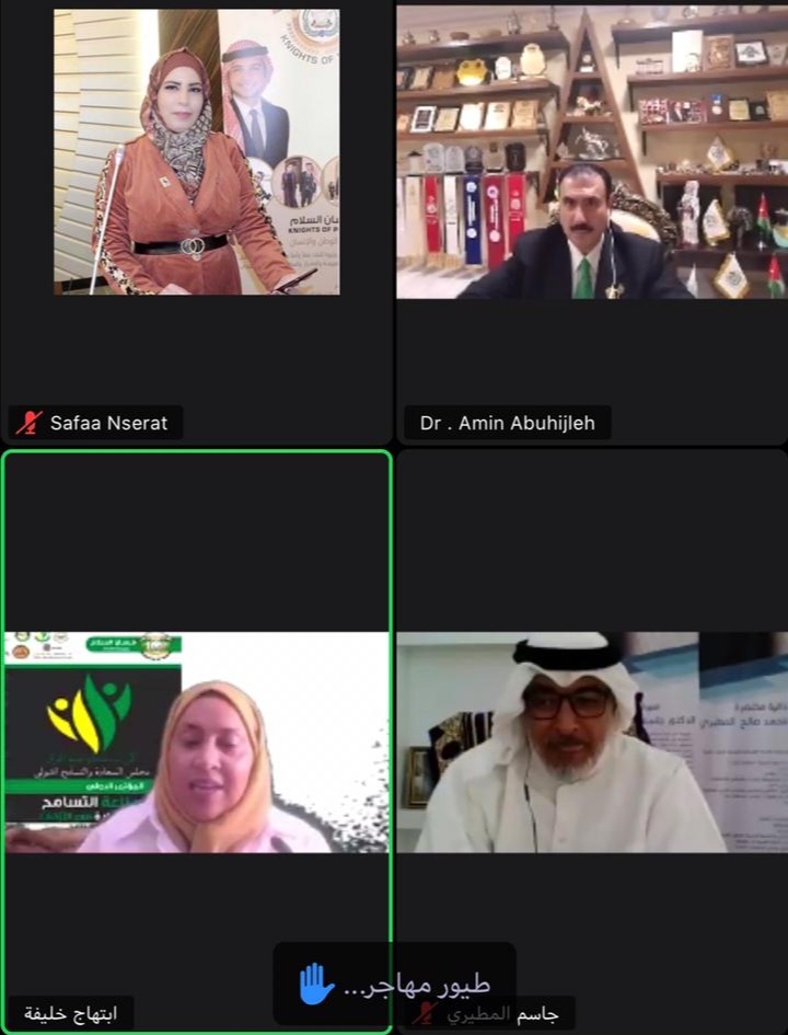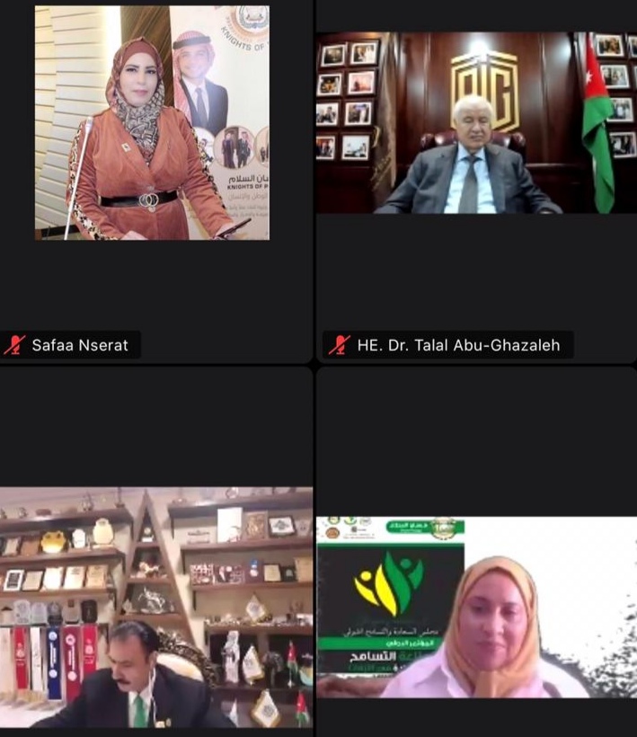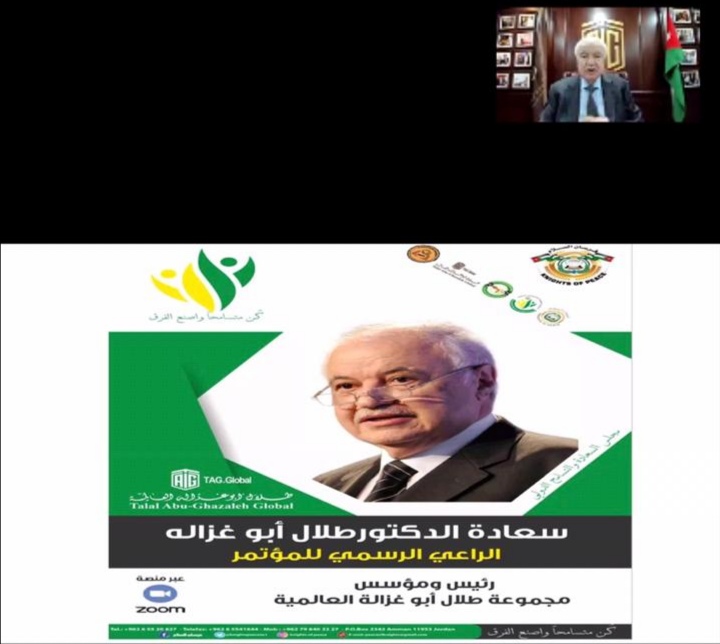 رعى سعادة الدكتور / طلال أبو غزاله – ( رئيس و مؤسس مجموعة طلال أبو غزاله العالمية المؤتمر الدولي ” صناعة التسامح و السعادة في الأزمات ” و الذي نظمته فرسان السلام برئاسة سعادة الدكتور / أمين أبو حجلة – (رئيس فرسان السلام – رئيس المؤتمر) – حيث جاء هذا المؤتمر بمناسبة – ( اليوم العالمي للتسامح ) – بحضور ضيوف الشرف سعادة الدكتور الشيخ / أحمد بن خلفان الغفيلي – من سلطنة عُمان ، و سعادة المهندس السفير / فتحي عفانة – ( الرئيس التنفيذي لفاست لمقاولات البناء ) _ و سعاد الدكتور / عقيل العذارى – ( رئيس مجموعة البورد الأوروبي للتدريب و إعداد القادة ) – و رؤساء و أعضاء المجالس الدولية لفرسان السلام و الشخصيات البارزة .