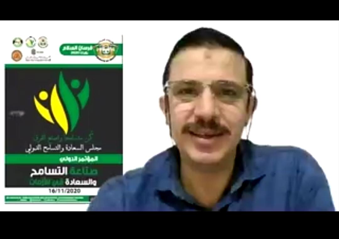 واستهل سعادة السفير المهندس / فتحي جبر عفانة – ضيف الشرف كلمته وأنه لمن دواعي سروري مشاركتكم اليوم مؤتمر صناعة التسامح والسعادة في الأزمات ، مشيرا أن التسامح قيمة إنسانية لدى الجميع