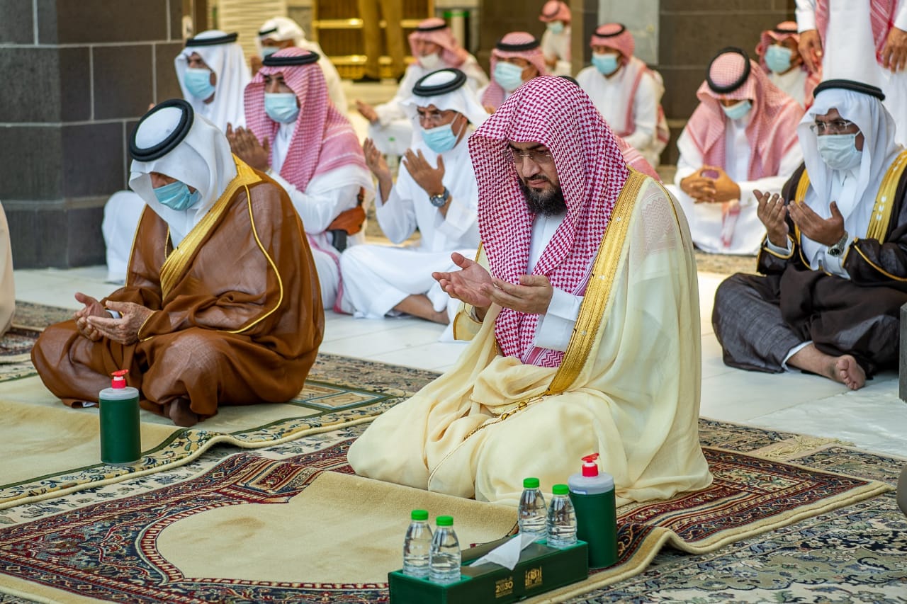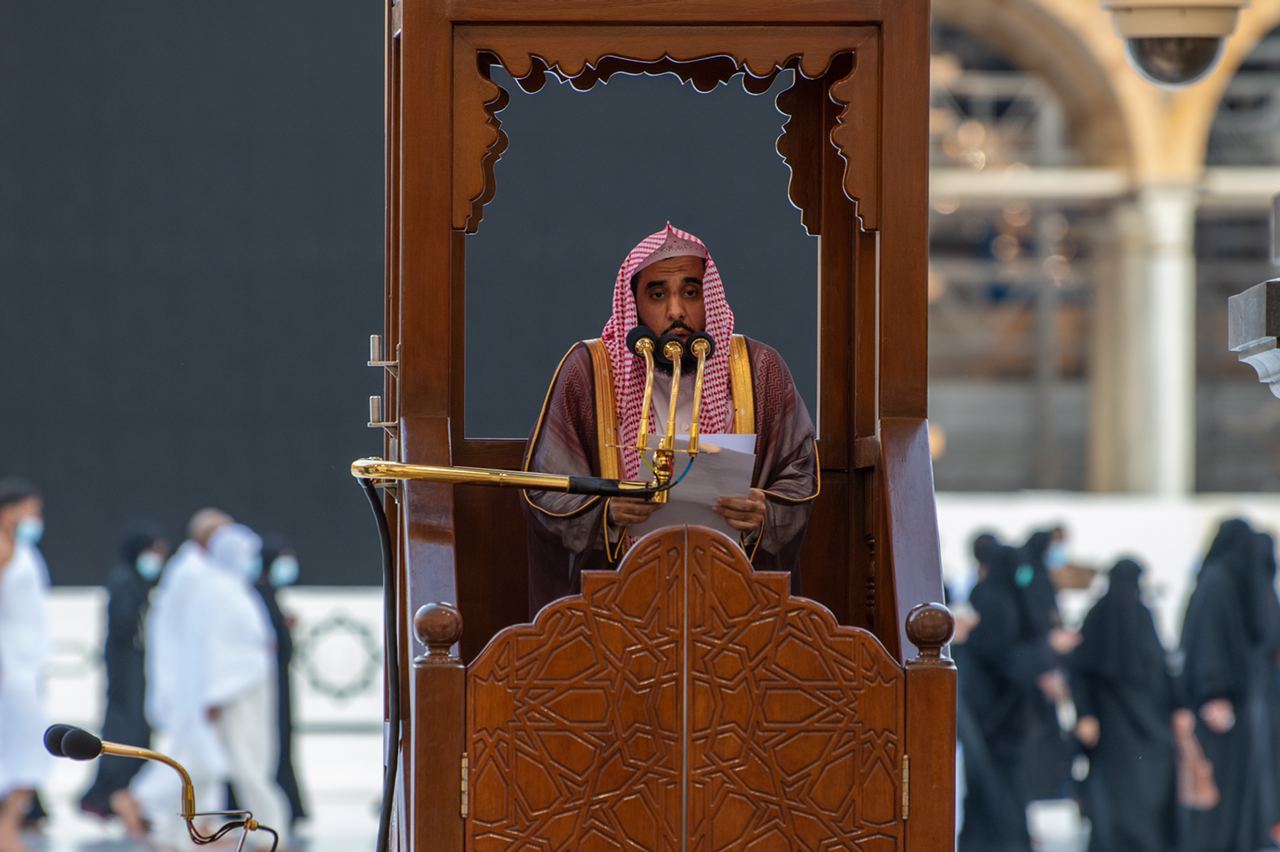 و قد أمَّ المصلين إمام وخطيب المسجد الحرام فضيلة الشيخ الدكتور / عبدالله بن عواد الجهني , الذي ألقى خطبة أوصى فيها المسلمين بكثرة الدعاء واللجوء إلى الله عزَّ وجلَّ في السر والعلن .
