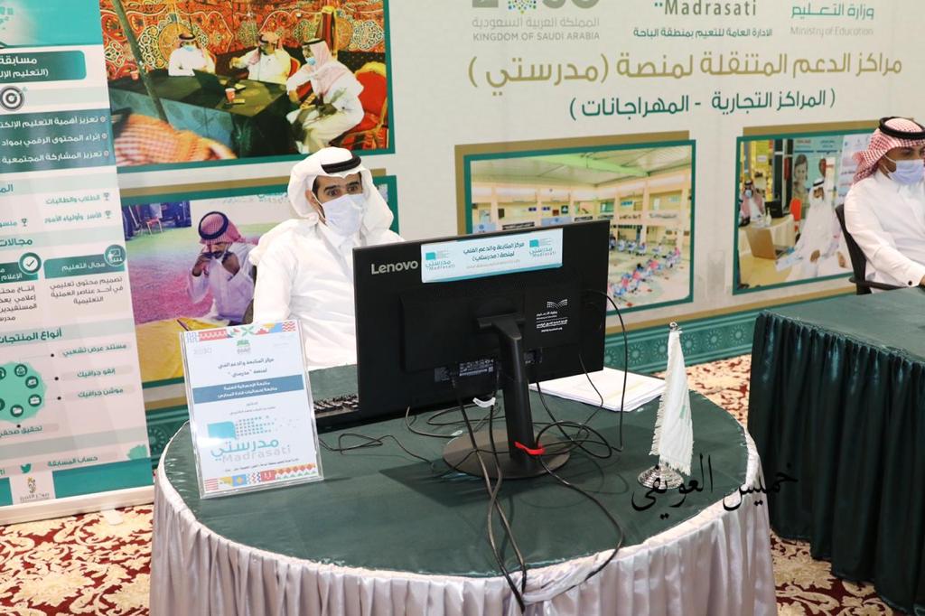 وأشار رئيس المركز الإعلامي الأستاذ جمعان الكرت في مستهل اللقاء بأن هذه الزيارة تأتي في سياق الزيارات الإعلامية للإدارات الحكومية بمنطقة الباحة من منطلق الوقوف على المنجزات التي تتحقق بفضل الجهود التي تقوم بها حكومتنا الرشيدة على كافة الصعد، ليرحب المدير العام الدكتور الزهراني بالإعلاميين مشيرا إلى أهمية الإعلام في جانب البناء وخدمة المجتمع مضيفا أن الإدارة أنشأت في مطلع العام الدراسي مركزا للمتابعة والدعم الفني لمنصة مدرستي لتكون حلقة ربط بين الميدان التربوي بكل أطيافة والإدارة ووزارة التعليم من خلال أرقام واحصائيات دقيقة يتم الحصول عليها من المنصة، وأشاد بجهود جميع القائمين على المركز من قياديين ومشرفين تربويين لعملهم المستمر في المتابعة الفنية والتي تستمر إلى الساعة الثامنة مساء ، وقال بأن التعليم عن بعد أضحى خيارا استراتيجيا إذ يحقق مكتسبات تربوية وتعليمية وتثقفية سواء في الاسهام بتنمية شخصيات الطلاب والطالبات أو زيادة مهارة التواصل أو تمكينهم على أساليب التعلم الذاتي والاستثمار الأمثل للأجهزة الذكية في الأستليب الحياتية الأخرى، ونوه بالجهود التي يحظى بها التعليم في الباحة من سمو أمير منطقة الباحة الأمير الدكتور حسام بن سعود والذي تفضل بتدشين المركز فضلا عن كلمته الضافية مع إنطلاقة العام الدراسي إذ احتوت على مضامين مهمة محفزة ومشجعة للطلاب والطالبات على الاقبال على التعليم والاستفادة مما يقدم لهم في مختلف العلوم والمعارف، بعد ذلك طرح الإعلاميون أسئلتهم على المدير العام الذي أشار بأن هناك ثمة صعوبات تم تجاوزها بتوفير أجهزة حاسوبية للطلاب الغير قادرين على الشراء وذلك بتبرع سخي من رجال الخير. بعد ذلك رافق الفريق الإعلامي الأستاذ علي بن عوضه مديس المساعد للشؤون التعليمية للبنين ليقف الجميع على المركز ومشاهدة خطوات المتابعة حيث أشار مديس إلى الهدف العام من مركز المتابعة والدعم الفني لمنصة مدرستي والذي تولاه عدد من القياديين والمعلمين المختصين في علوم الحاسب مؤكداً أن المنصة لم تكن مقتصرة على تسهيل التواصل التقني بل تجاوز ت ذلك إلى تجويد العمل التعليمي مما استحق تعليم الباحة الإشادة من كبار المسؤولين في وزارة التعليم لشمول الخدمة كافة المنطقة وتحقيق منجز وصل إلى 99.94% وهي نسبة عالية مقارنة بمناطق تعليمية أخرى بعد ذلك قدم شرحا وافيا مستعينا بأجهزة الحاسوب التي خصصت لهذا الغرض مفندا البيانات الرقمية والجداول الاحصائية التي يتم استقاؤها بشكل مستمر عن عمليات التدريس والحضور والغياب والواجبات والتواصل ليشكل منظومة مترابطة بين قائد المدرسة والمعلمين والطلاب وأولياء الأمور والمشرفين التربويين، وأشار بأن تعليم الباحة حقق منجزا في نسبة اكتمال العمل بين أطراف المستفيدين وبنسب عالية وهذا دليل على التناغم والتعاون وتضافر الجهود من جميع القائمين، بعد ذلك استمع الجميع إلى شرح مباشر لمعلم العلوم المدرس بندر الشهري من حجرة الدرس بمدرسة وراخ والواقعة في أطراف منطقة الباحة وقد استخدم المعلم وسائل تعليمية تبسيطا لمفاهيم الدرس وتوصيلا للمعلومة وكان الطلاب متفاعلون في النقاش والحوار ، وفي الختام شارك عدد من الإعلاميين في رصد انطباعاتهم في سجل الزيارات معبرين عن سرورهم بما سمعوا مبتهجين بما شاهدوا،