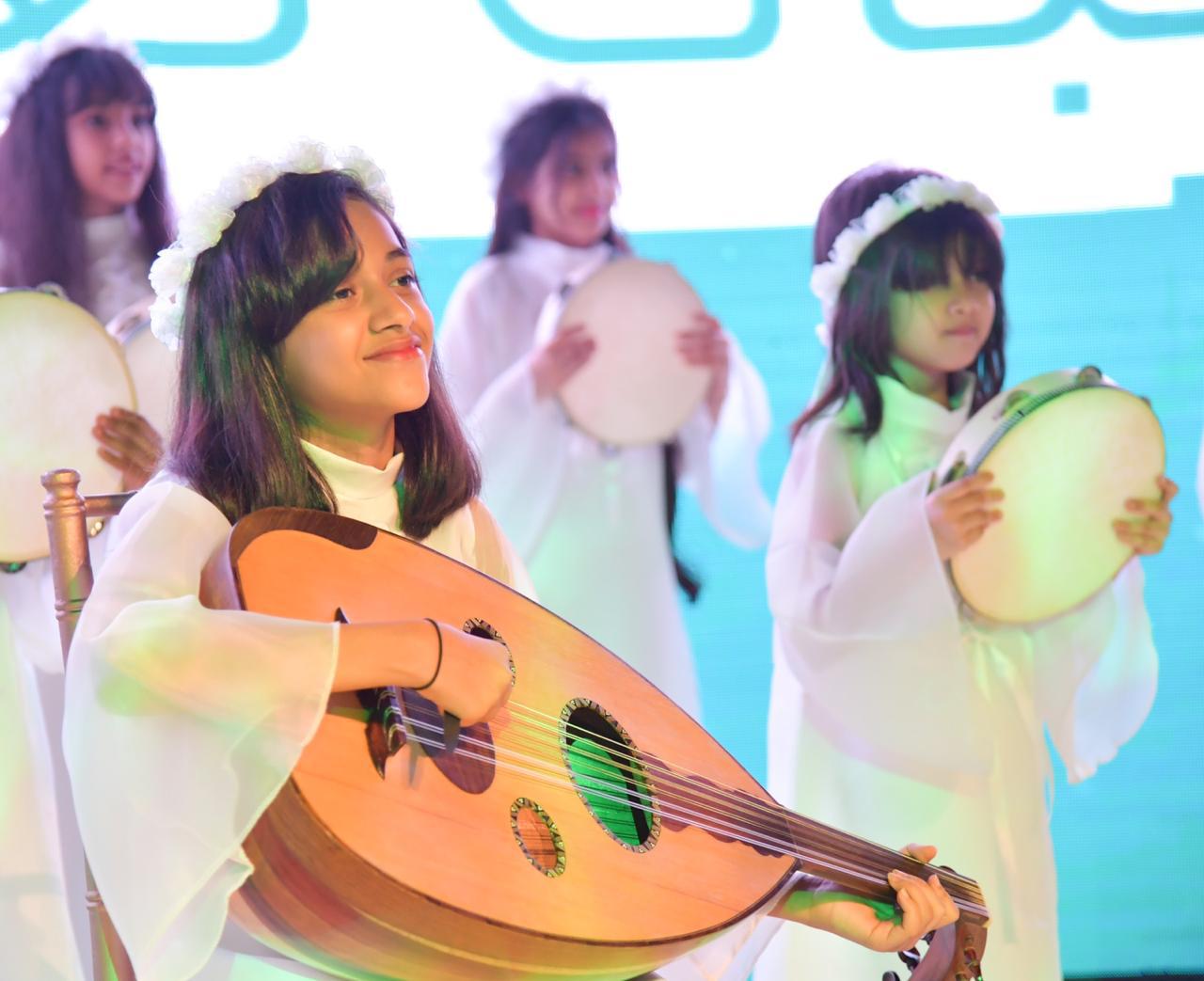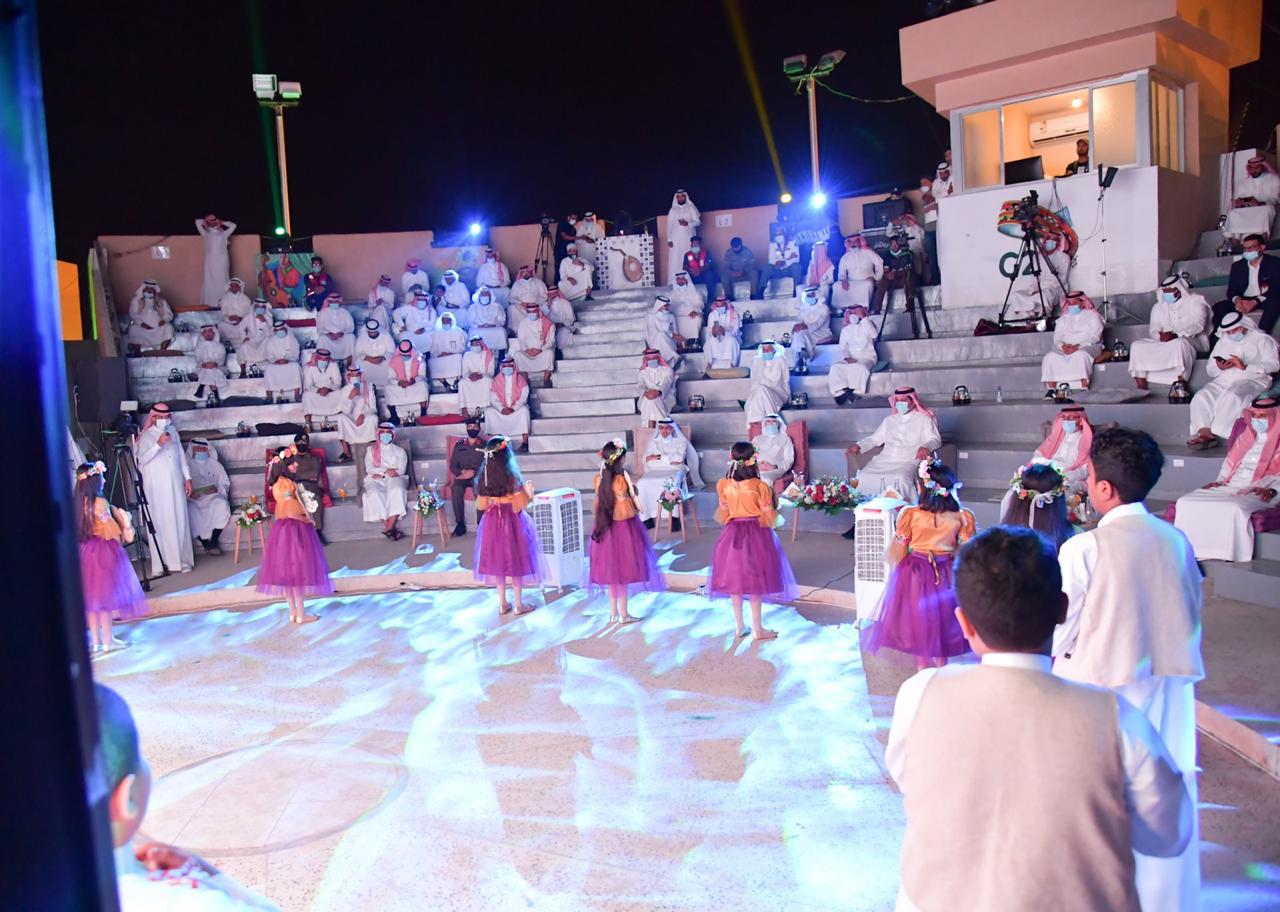 لينتقل الجميع للمسرح الروماني حيث قدمت الطالبة الشاعرة ميار آل إبراهيم قصيدة تغنت فيها بالوطن ومنحزاته وقيادته ، تلاه عرض موسيقى وعزف وطني قدمته مجموعة من الطالبات الموهوبات ، واختتم الحفل بمسرحية وطنية بعنوان “ذاكرة ملك وشعب ” شارك فيها الطلاب والطالبات مستعرضين مسيرة هذا الوطن العظيم وحكمة ملوكه ومنجزاته منذ عهد الملك المؤسس إلى عهد الملك سلمان بن عبدالعزيز “حفظه الله”.