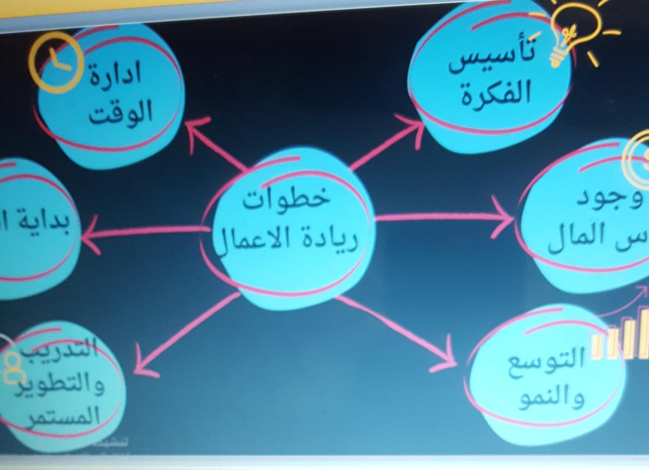 حيث قدمت الأستاذة بيان حمودة دورة عن ريادة الأعمال تضمنت مواضيع عديدة منها كيفية تحفيز المبدعين والمخترعين و طريقة توفير بيئة إيجابية لاحتضان الأفكار الإبداعية والأعمال وتطرقت الأستاذة عن أبرز رواد الأعمال السعوديين وفي ختام البرنامج دعت القائدة نورة الزهراني إلى تحفيز كل طالبة تملك مشروع إلى الصبر واتخاذ الخطوات الصحيحة في الوقت المناسب .