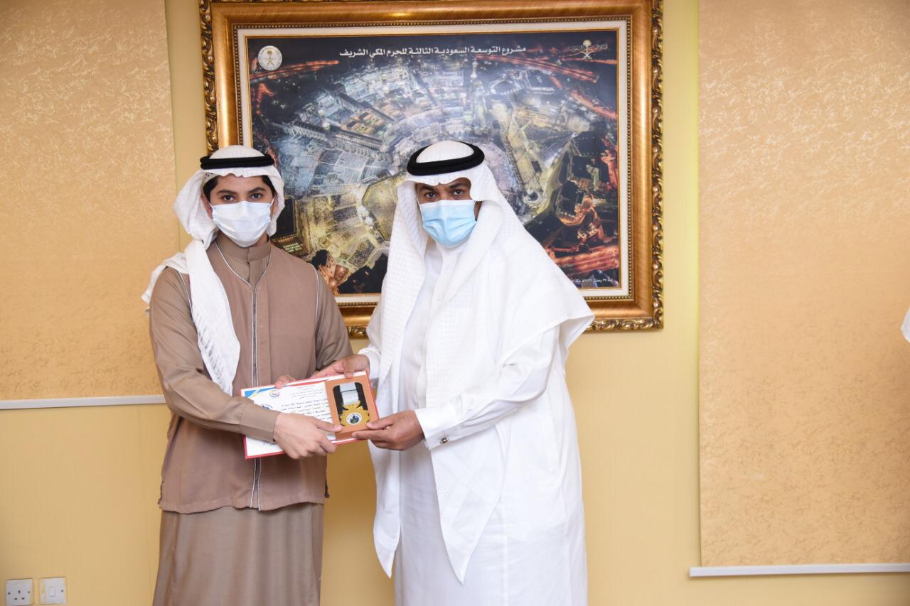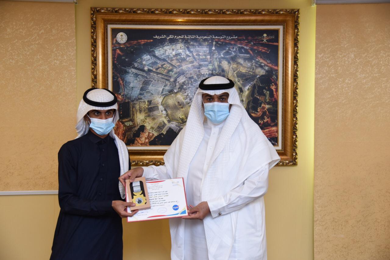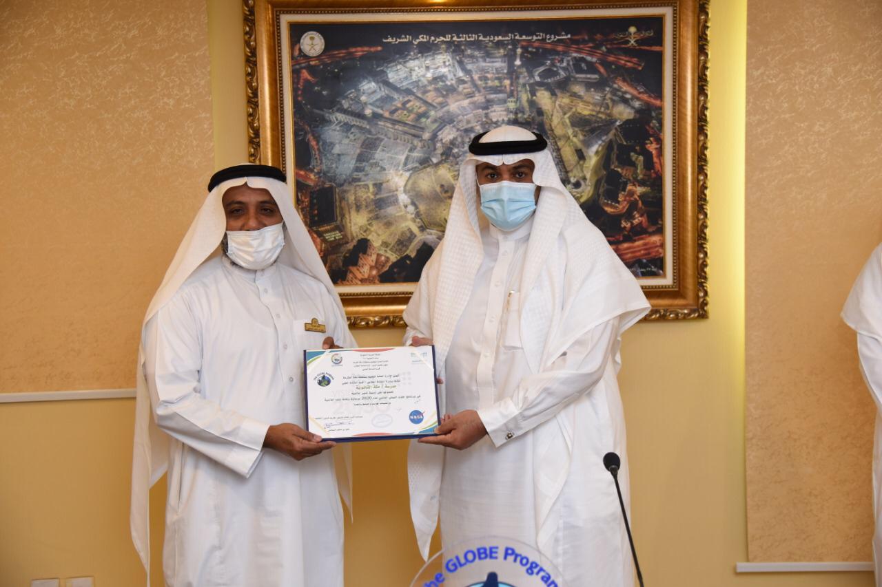 كرّم المدير العام للتعليم بمنطقة مكة المكرمة الدكتور أحمد بن محمد الزائدي صباح اليوم الاثنين: 15/ 4/ 1442هـ الموافق: 30/ 11/ 2020م بإدارة تعليم مكة، الطلاب الفائزين في برنامج جلوب البيئي العالمي من مدرسة مكة الثانوية؛ والذين حصدوا بجدارة ( 20 ) وسام تميز عالمي في المسابقة ، كان أبرزها تحقيق 8 أوسمة عالمية في الربع الثالث لهذا العام 2020م في إنجاز مميز لتعليم مكة وللمدرسة في ظل جائحة كرونا، وذلك بحضور المساعد المكلف للشؤون التعليمية الأستاذ فائز النفاعي ، ومدير إدارة نشاط الطلاب الأستاذ نبيل طيب، ورئيس ومشرفي قسم النشاط العلمي، وقائد المدرسة والطلاب المكرمين.