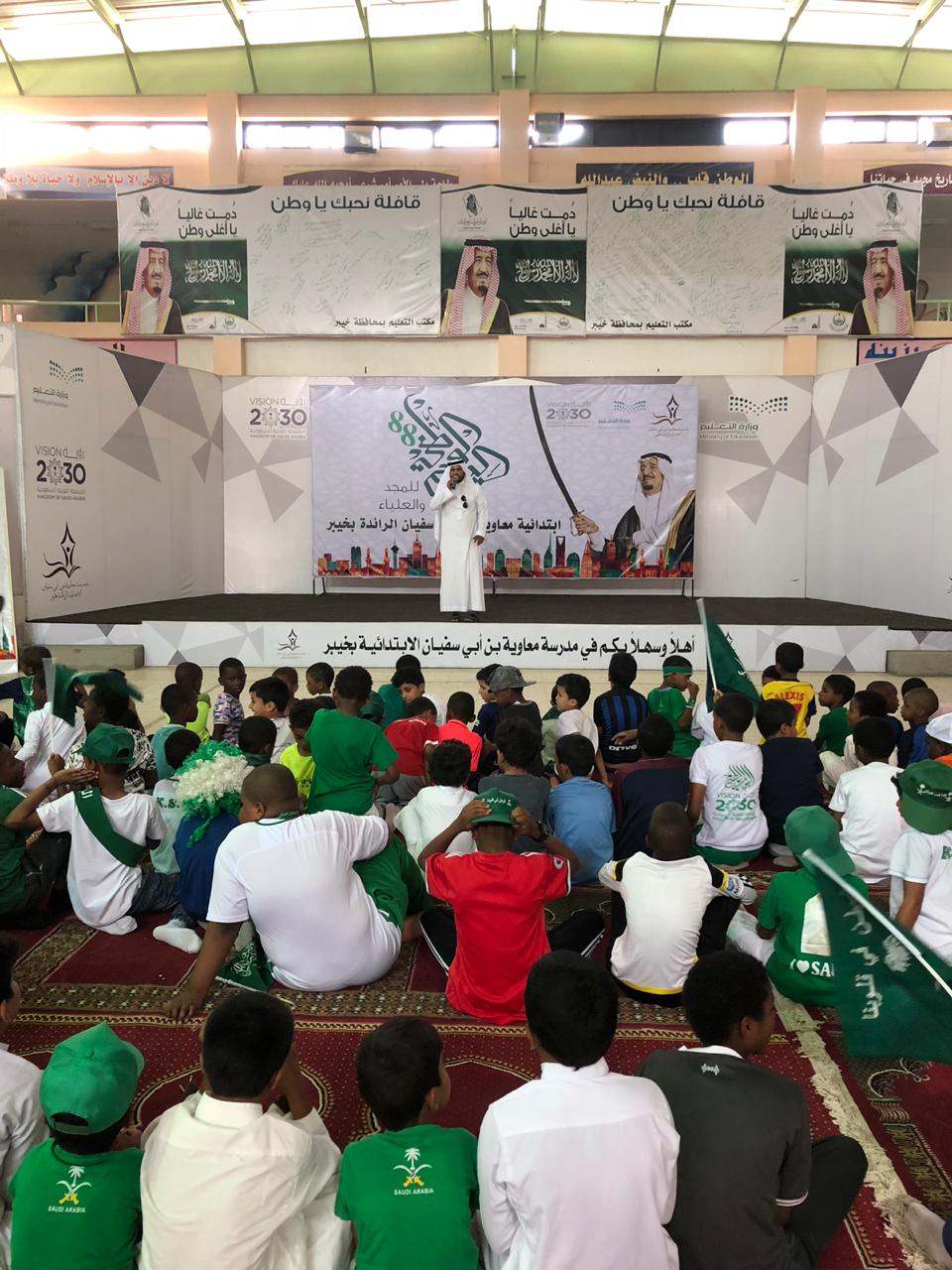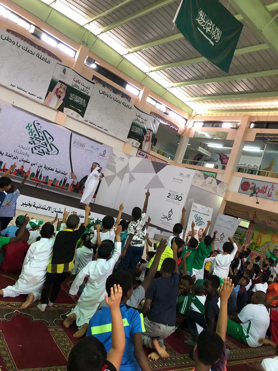 وبهذه المناسبة الغالية احتفلت مدرسة معاوية بن ابي سفيان الأبتدائية وبرامج التربية الخاصة بمحافظة خيبر اليوم الثلاثاء الموافق 1440/1/8بقيادة قائد المدرسة :الاستاذ مبارك حميدان البريقعي وبحضور جميع المعلمين بالمدرسة وعلى راسهم قائد المدرسة مبارك حميدان البريقعي ورائد النشاط الاستاذ أحمدهزازي , وقد تنوعت فقرات البرنامج في هذا الحفل :