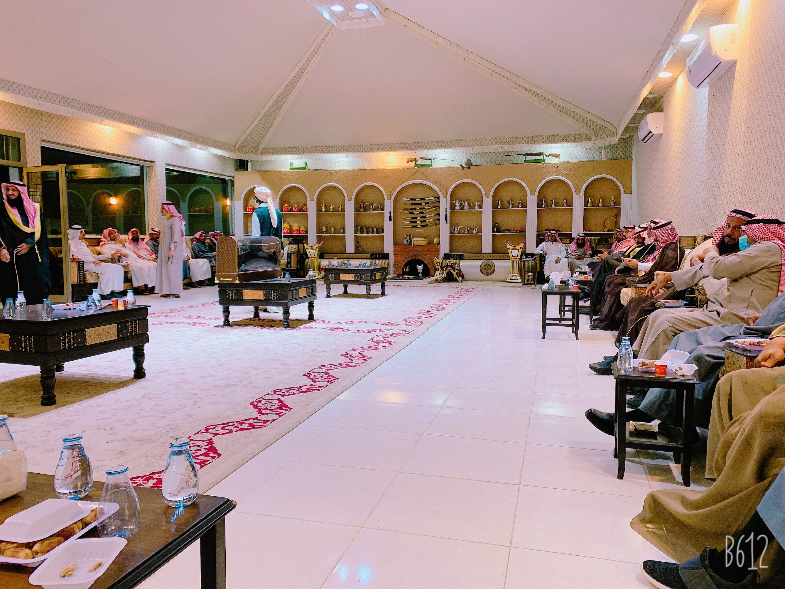 واحتفل الشيخ فضي الرشيدي، بحضور مشائخ قبيلة الشوالعة وزملاء العريس في قصر ريفال بمنطقة المدينة المنورة، تماشيًا مع الإجراءات الاحترازية التي وضعتها وزارة الصحة لمواجهة فيروس كورونا.