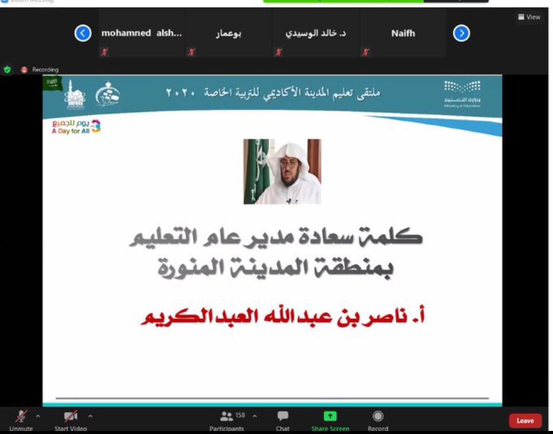 برعاية مدير عام تعليم المدينة المنورة نظمت إدارة التربية الخاصة (بنين – بنات ) بتعليم المنطقة ( ملتقى تعليم المدينة الأكاديمي للتربية الخاصة 2020 ) بمناسبة اليوم العالمي للأشخاص ذوي الإعاقة .