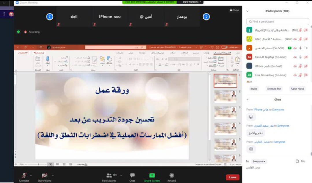 و اختتم الملتقى بالنتائج و التوصيات ، كما نظمت إدارة التربية الخاصة بنات لقاء “الممارسات التعليمية المتميزة في تعليم الأطفال وطالبات التربية الخاصة في ظل جائحة كورونا” قدمنه المعلمات المتميزات في التربية الخاصة .