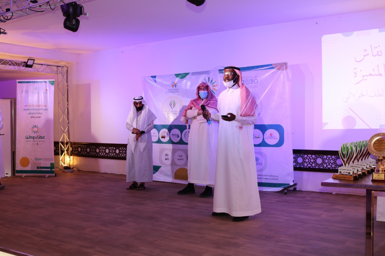 عقب ذلك تم عرض الفرق التطوعية المتميزة والمبادرات المتميزة التي قدمها المتطوعون خلال جائحة كورونا, كما شارك في الاحتفالية القسم النسائي والفرق التطوعية النسائية لـ اللجنة, حيث تم تكريم جميع المتطوعين والمتطوعات والفرق المتميزة بدروع تذكارية وهدايا قيمة.