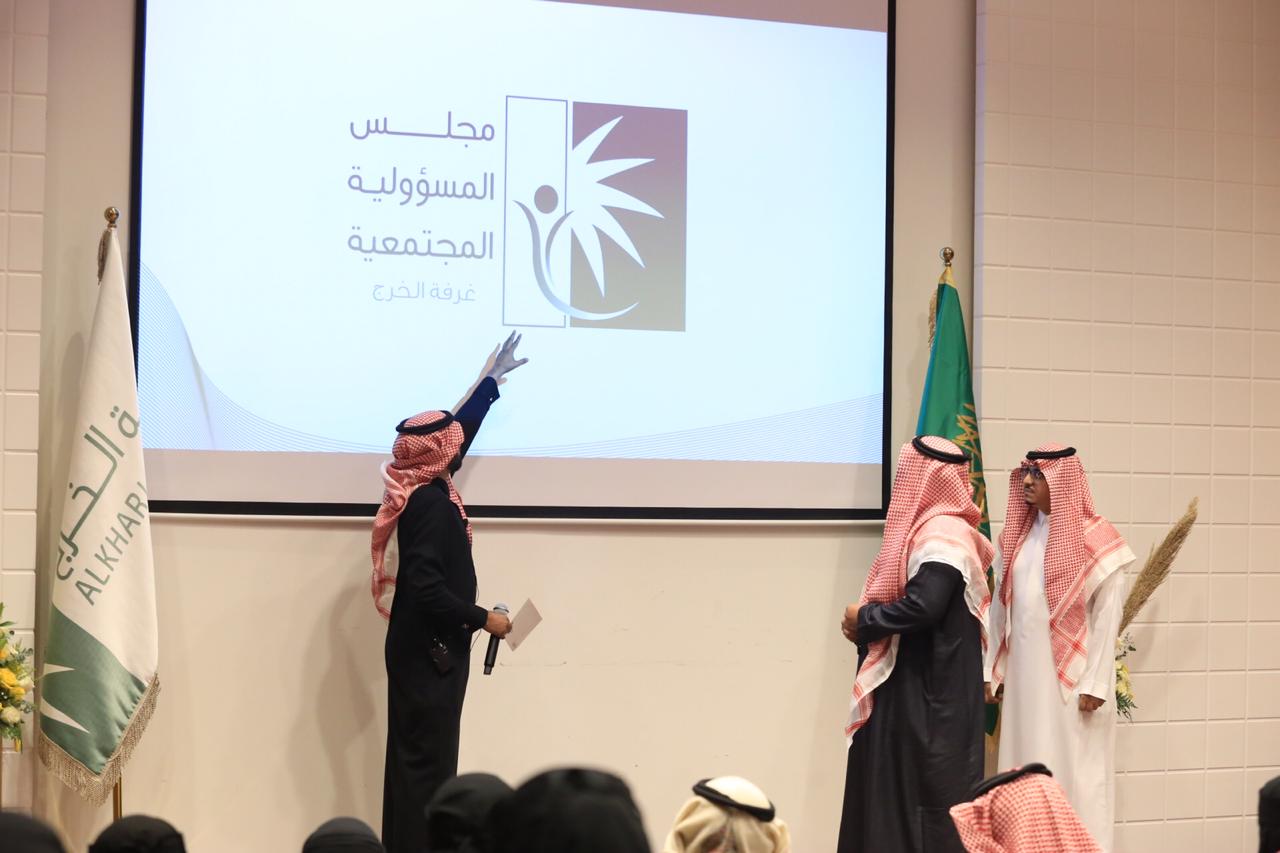 دشن رئيس غرفة الخرج الأستاذ عماش بن الدفين مساء الأربعاء الموافق 9/12/2020 هوية مجلس المسؤولية المجتمعية بالمسرح الرئيسي ، يهدف المجلس لعقد الشراكة المجتمعية بين فئات المجتمع وقطاعاته ونشر الوعي الإجتماعي وتحفيز ترابطة ، كما تسعى لإنشاء قواعد بيانات يمكن تطويرها والإستفاده منها لخدمة المجتمع والربط بين الجهات المجتمعية والمجتمع .