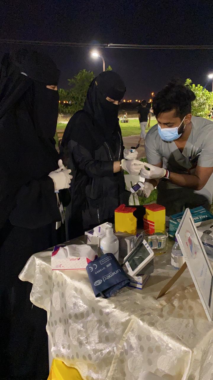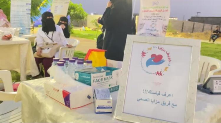 وقد قامت قائدة الفريق الأستاذة ليلى دهل بشرح مفصل عن المبادرة وأهدافها ونتائجها المتوقعة للمساهمة في رفع مستوى الوعي الصحي بين أفراد المجتمع حيث بلغ عدد المستفيدين ما يقارب ٢٠٠شخص من المشاركين في الفعالية والضيوف والزوار .