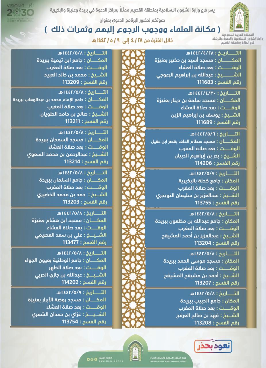 ينظم فرع وزارة الشؤون الإسلامية بمنطقة #القصيم برامج دعوية ثلاثة