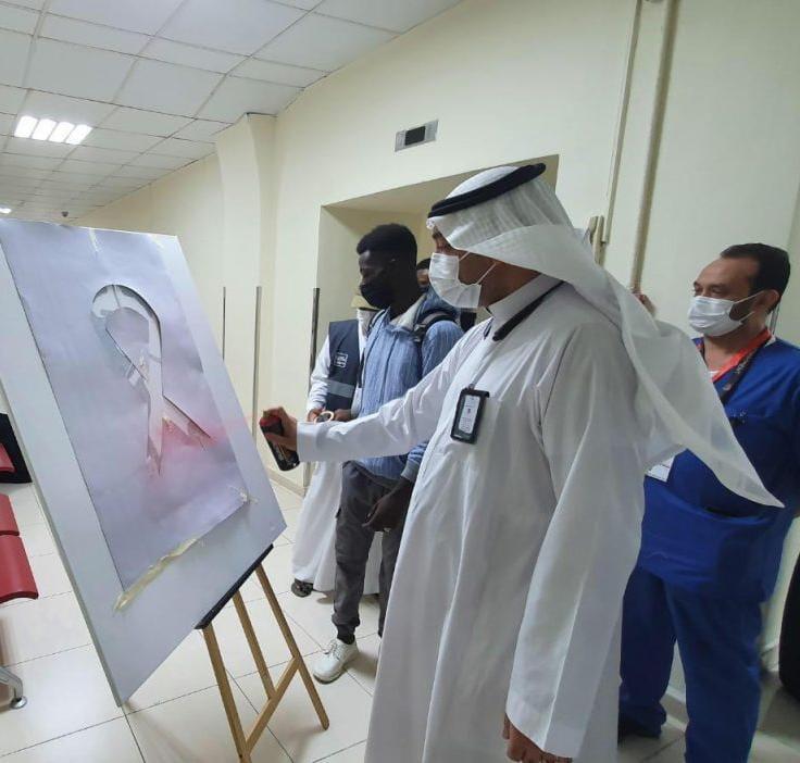 وقد أقيمت الفعالية وسط الإلتزام بإشتراطات وإجراءات مكافحة العدوى ، باركان توعوية بمشاركة اقسام داخليه مكافحة العدوى والمختبر والتثقيف الصحي والتغذية العلاجيه والخدمة الاجتماعية والتوعوية الدينية وبعض الفرق التطوعية صناع الخير التطوعي وفريق رواية فن ومركز الخياط الخيري لغسيل الكلى وذلك من اجل رفع مستوى الوعي والتثقيف الصحي بالفحص والمشورة والوقاية من الاصابة بالمرض من المختصين استهدفت الزوار والمراجعين .