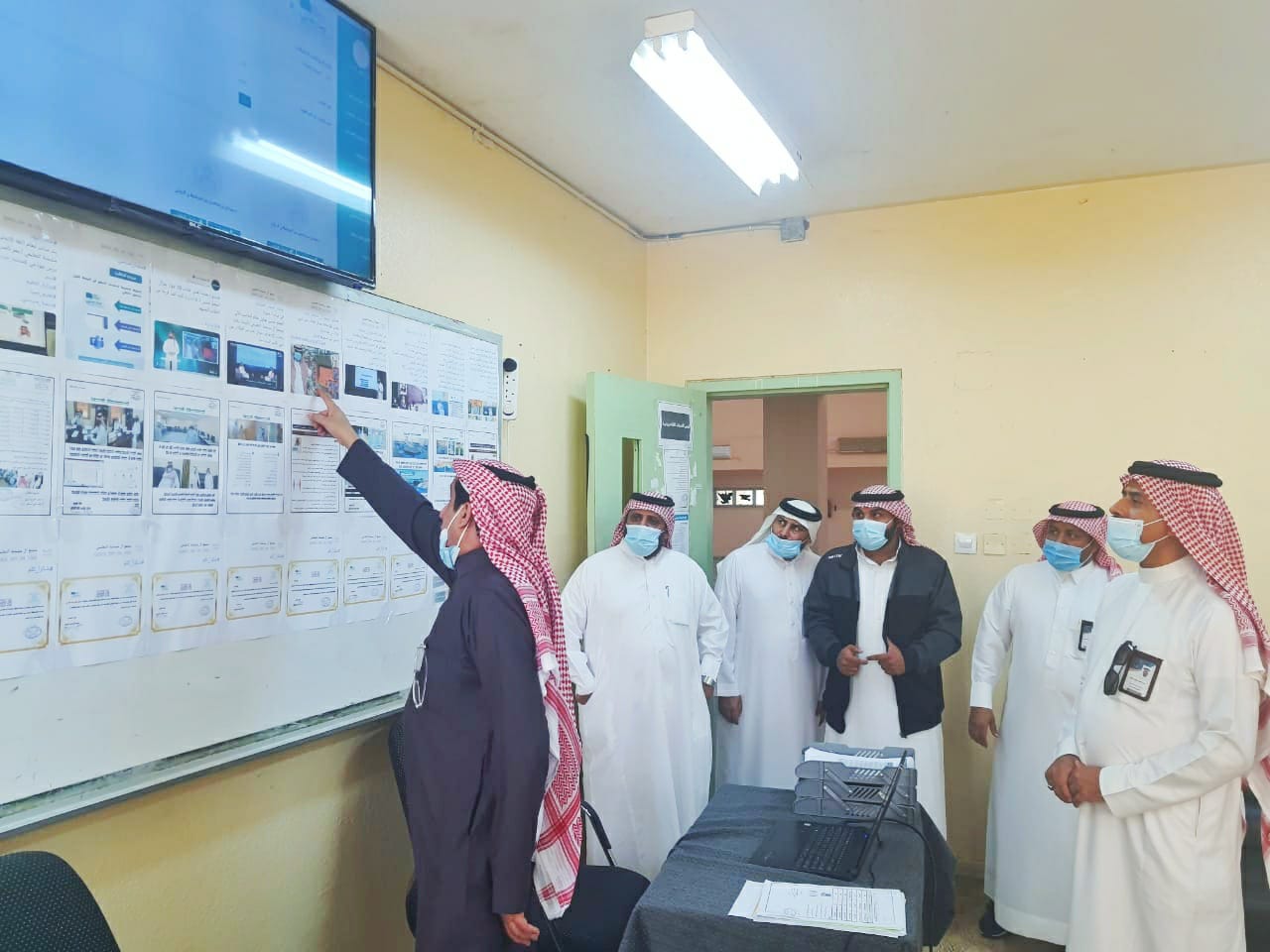 وقف مساعد مدير تعليم صبيا للشؤون التعليمية أ.ناصر بشير معافا صباح اليوم الثلاثاء الموافق 22 ديسمبر 2020 – 7 جمادى الأول 1442هـ على سير الإختبارات بمجمع آل مشحنة التعليمي في يومها الثالث يرافقه مساعد مدير مكتب التعليم بالريث للشؤون التعليمية أ.محمد موسى المسعودي ورئيس قسم القيادة بالمكتب أ.محمد المسعودي والمشرف التربوي أ.عبدالله يحيى النجادي حيث اطلع أ.ناصر على تنظيم القاعات الافتراضية بمنصة مدرستي واستمع لشرح وافٍ من قائد المدرسة أ. محمد موسى الريثي عن أعداد الطلاب والحضور لليوم الثالث من الاختبارات وقام بالإطلاع على تنظيم القاعات الافتراضية بمنصة مدرستي وجهود المدرسة في تجهيز وإعداد الاختبارات بشكل عام مؤكداً على تقديم المساعدة اللازمة لجميع الطلاب والتواصل المباشر مع ولي الأمر والتفاعل مع الإستفسارات والإجابة عليها .