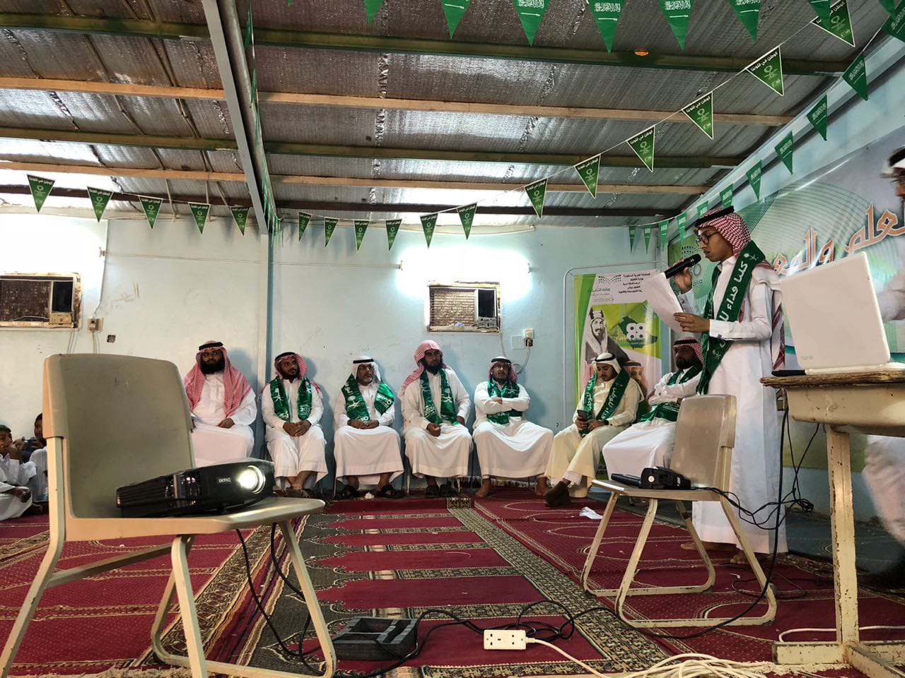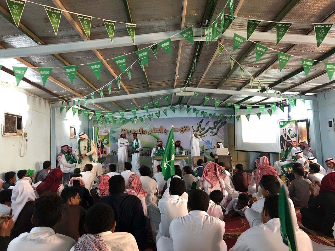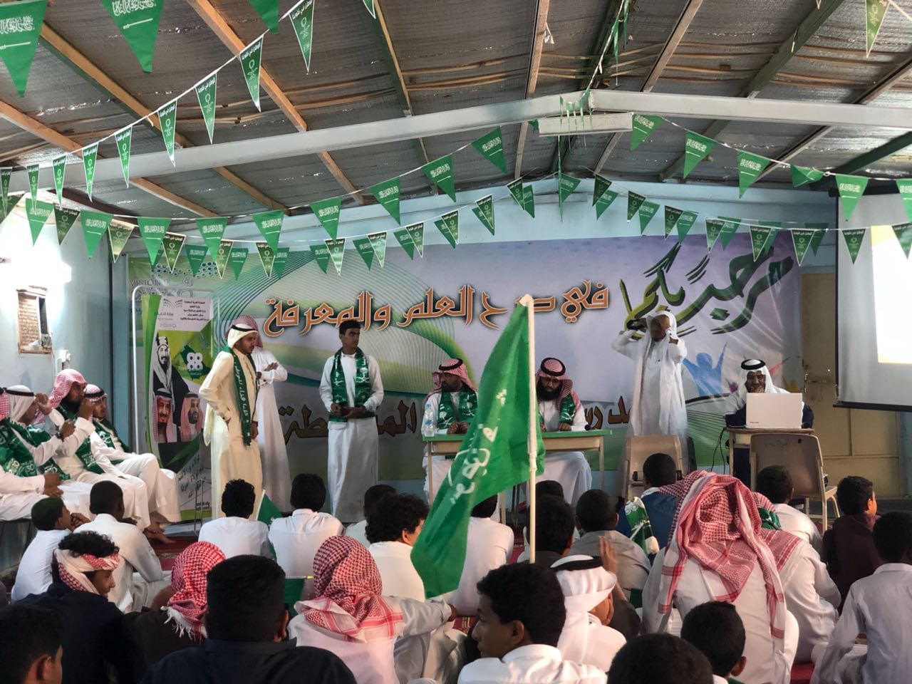 على مدار اسبوع كامل اختتمت مدرسة الشريعة المتوسطة والثانوية فعاليات اليوم الوطني 88 اليوم الخميس ١٤٤٠/١/١٠ بدأ اليوم الختامي بإذاعة صباحية مميزة عن الوطن وطَن الوفاء والإخلاص والحب والتّلاحم، وطن الأمن والأمان والإيمان، وطَن الكرامة والمجد والعطاء والسعادة، بدأ الحفل بآيات من القرآن الكريم ثم السلام الملكي تلى ذلك كلمة قائد المدرسة الأستاذ / سليمان مطاري ثم كلمة المرشد الطلابي الاستاذ / حسن عارضي بعد ذلك بدأت فقرات الحفل بإشراف رائد النشاط المتميز الأستاذ: أحمد فقيه وامين المصادر الاستاذ / حسن مطري والتي اشتملت على العروض المسرحية والكلمات الخطابية و الاناشيد الوطنية وفي نهاية الحفل شكر قائد المدرسة الاستاذ / سليمان مطاري جميع منسوبي المدرسة على جهودهم في إبراز وإنجاح الحفل الختامي لليوم الوطني 88 راجيًا من الله ان يوفق الجميع لما يحبه ويرضاه .