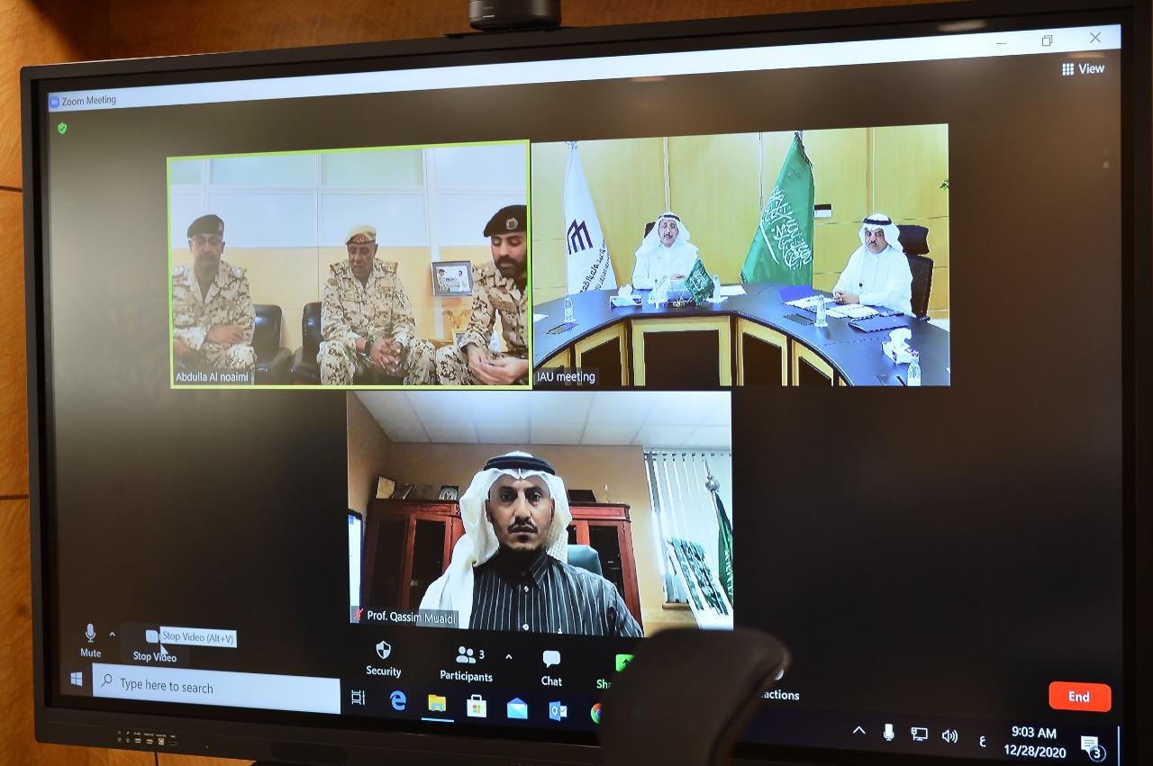 وقع معالي رئيس جامعة الإمام عبد الرحمن بن فيصل الأستاذ الدكتور عبد الله بن محمد الربيش مذكرة تفاهم بين الجامعة القيادة العامة لقوة دفاع البحرين صباح أمس عبر الاتصال المرئي ومثل قوة الدفاع سعادة اللواء الركن صلاح بن راشد السعد مدير التدريب العسكري .