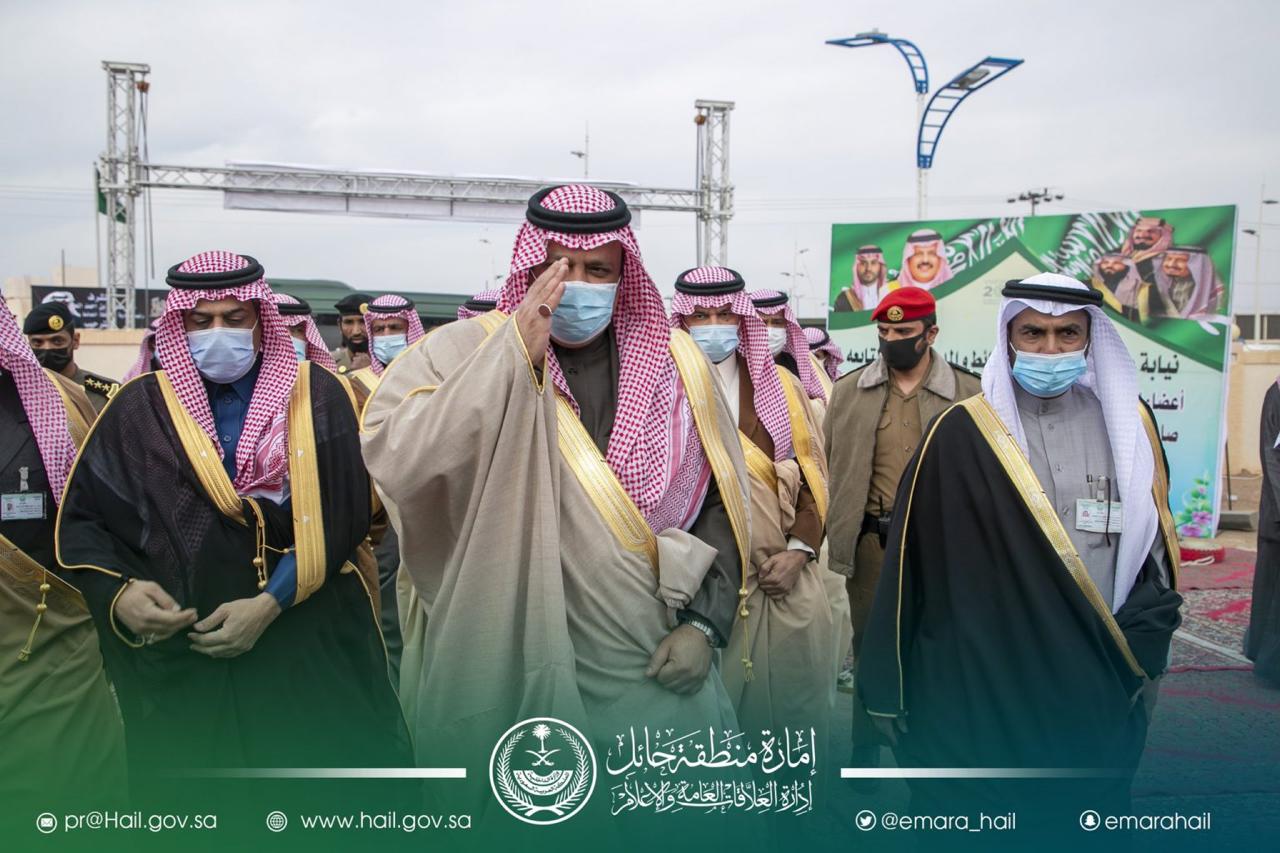 حيث كان في استقباله لدى وصوله مقر المحافظة وكيل إمارة منطقة حائل عادل آل الشيخ, ومحافظ محافظة الحائط محمد القنون ،وعدد من المسؤولين في المحافظة, ومشايخ القبائل ومدراء الإدارات الحكومية والأهالي.