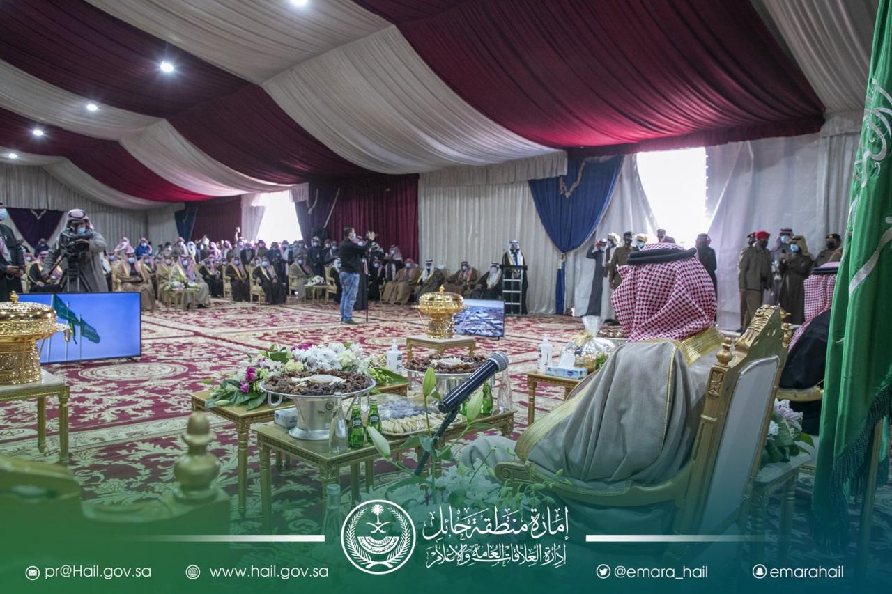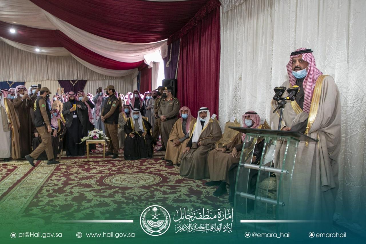 وتخلل الزيارة حفل خطابي, رحب محافظ المحافظة بكلمته خلاله بسمو أمير منطقة حائل ومرافقيه، مثمناً لسموه هذه الزيارة للوقوف عن كثب على سير العمل في المحافظة وما يقدم من خدمات للأهالي، وتلمس احتياجات المواطنين, والاستماع إلى مطالبهم في ظل ما توليه القيادةالرشيدة من اهتمام وعناية بالمواطنين.
