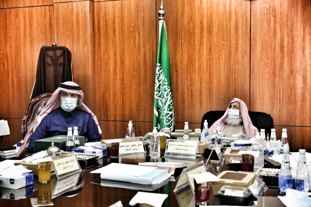 استقبل سماحة مفتي عام المملكة الشيخ عبدالعزيز بن عبدالله آل الشيخ في مكتبه اليوم معالي وزير الإسكان الأستاذ ماجد الحقيل بحضور أعضاء اللجنة الدائمة للإفتاء