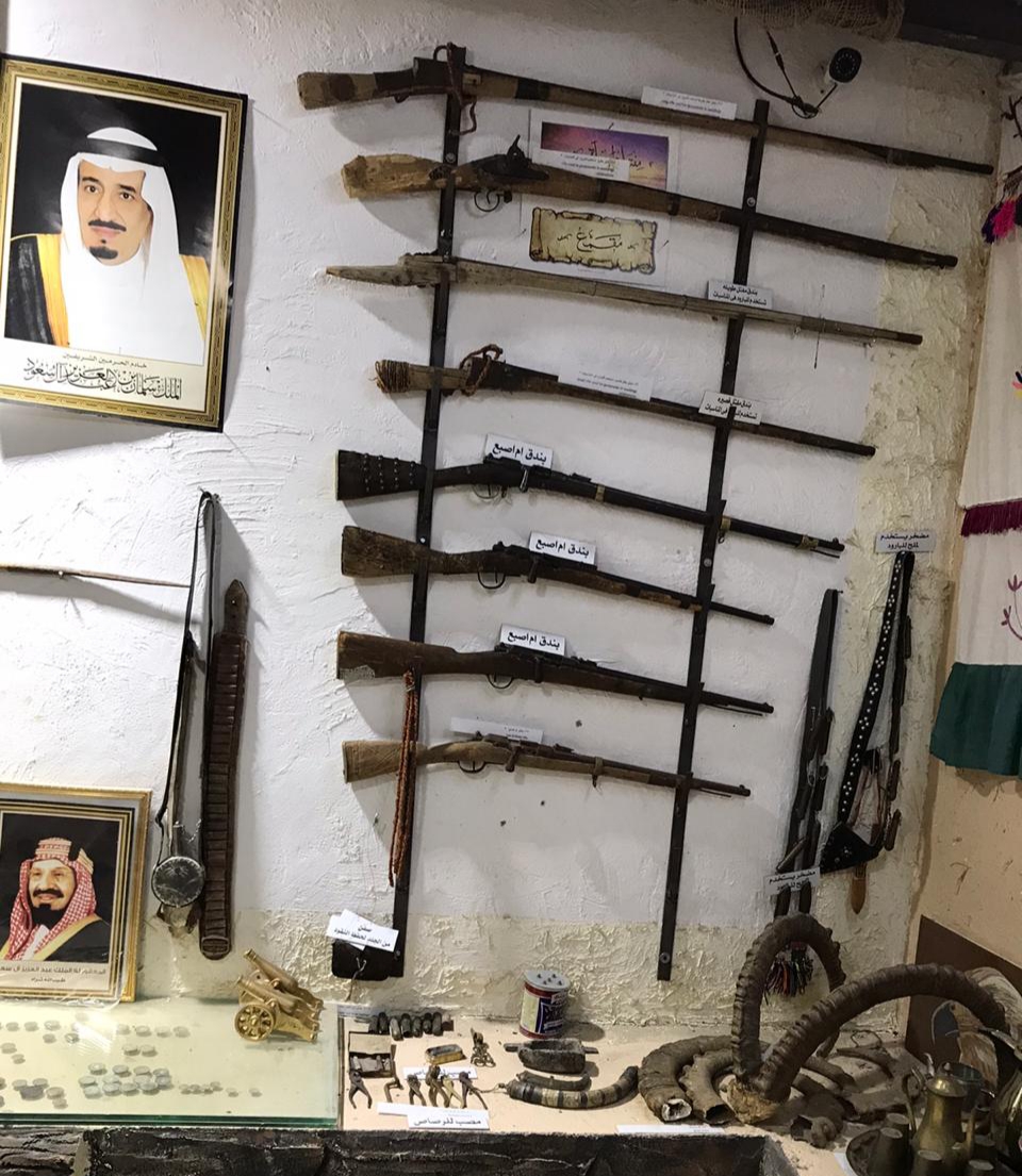 وأوضح الاستاذ عيد عبدالمعطي الحبيشي انه وعلى مدى أكثر من 15 عام استطاع جمع مايقارب 1500 قطعة أثرية يصل عمر بعضها 600 عام لافتاً ان جانب كبير من مقتنيات المتحف تروي تاريخ قرية الشبحة قديماً من أدوات منزلية قديمة والحلي التي تتزين بها المرأة البدوية في المنطقة والمصنوعة من الفضة والملابس بكافة أنواعها بالإضافة للنحاسيات والحجريات والفخاريات والعملات وأنواع الأسلحة المستخدمة قديماً.