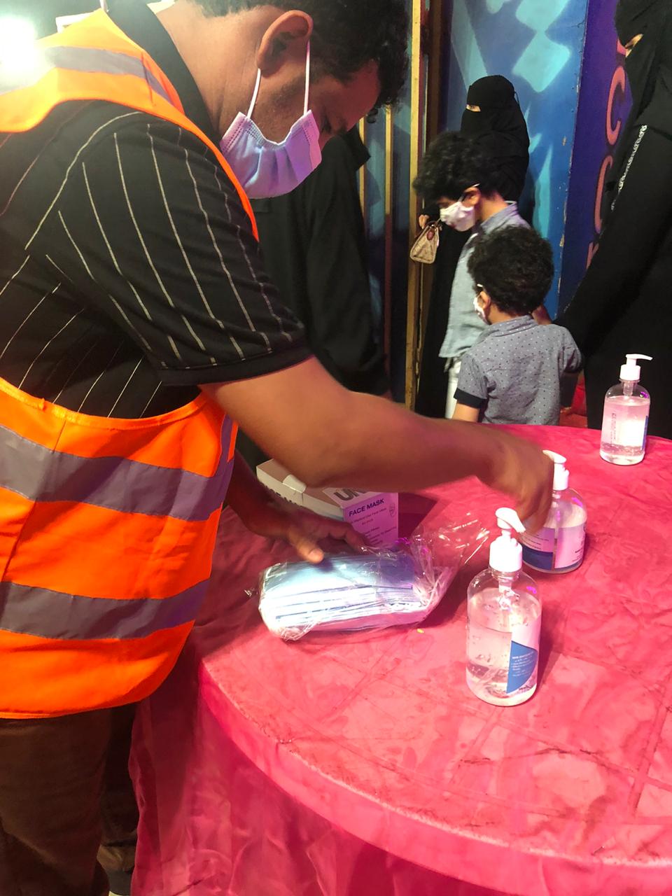 بإشراف ومتابعة سعادة أمين منطقة جازان المهندس نايف بن سعيدان ومتابعة مدير عام العلاقات العامة والمسؤولية الإجتماعية الأستاذ يحيى بن احمد حكمي ومتابعة ميدانية من المهندس ياسر عقيل المشرف العام على الفرق التطوعية بالأمانة يواصل متطوعو فرق أمانة منطقة جازان جهودهم لتنفيذ مبادرة (لسلامتنا نلتزم بالإجراءات الإحترازية ) والهادفة للتوعية بوجوب الإلتزام بتطبيق الإجراءات الإحترازية والوقائية من فيروس كورونا لمرتادي المراكز التجارية ومهرجانات التسوق بالمنطقة.