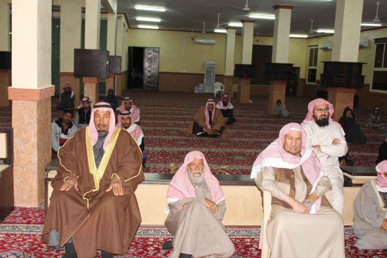 وفي نهاية المحاضرة قام فضيلة الشيخ محمد بن سلمان المهوس بزيارة معرف قبيلة الشوالعه من بني رشيد الشيخ “مرحب بن حسين بن شويلع في ديوانة في بلدة العرادية.وفي النهاية تناول الجميع وجبة العشاء المعد في هذا المناسبة.