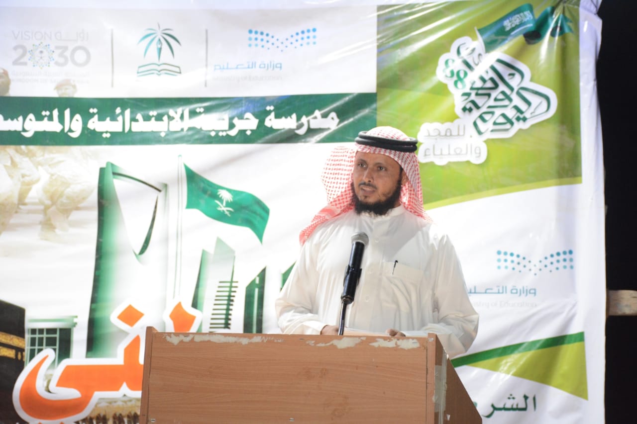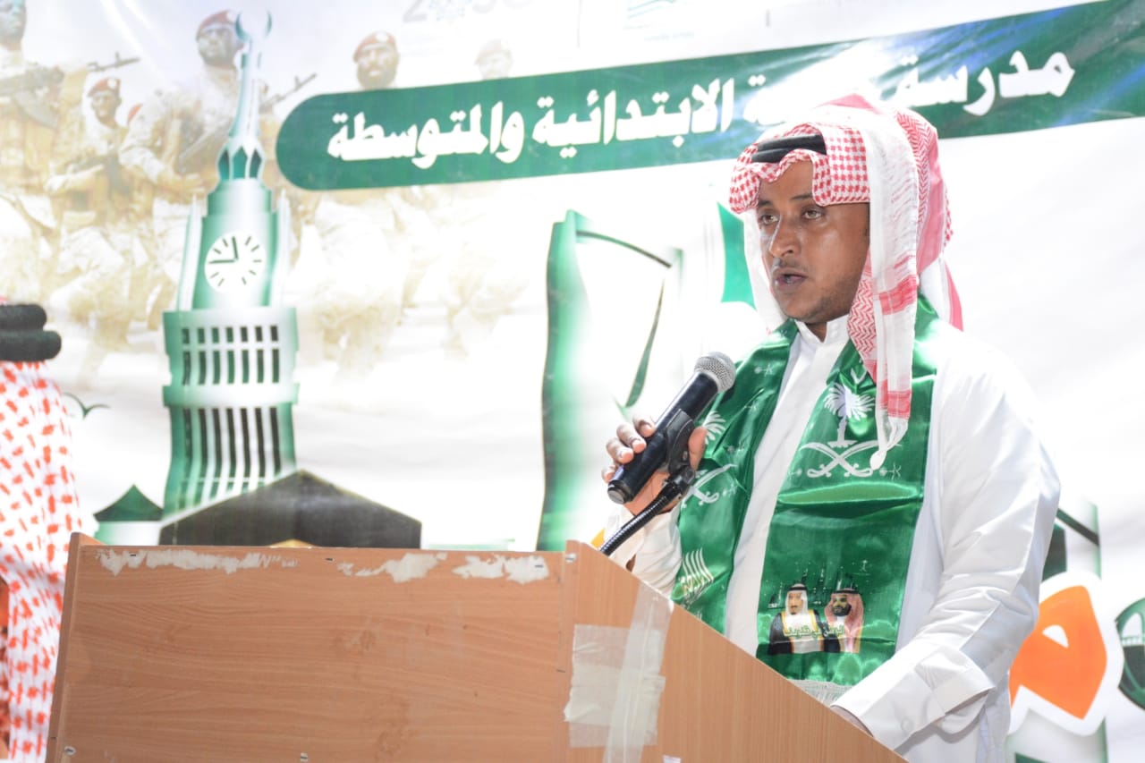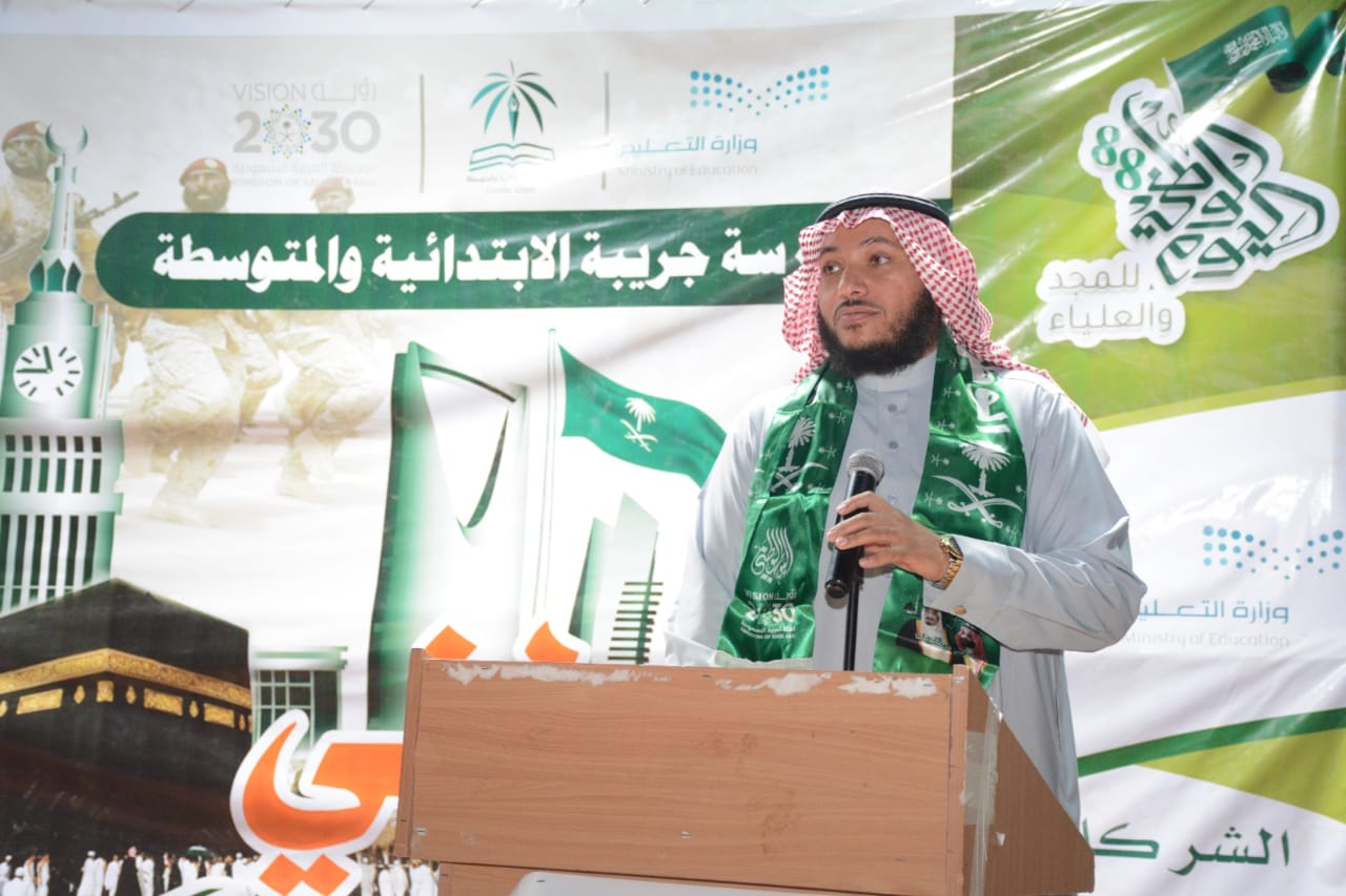 وبين قائد المدرسة الأستاذ حافظ جعفري أن إحتفالهم بهذه المناسبة هو ترسيخاً للدين والولاء للمليك والانتماء للوطن وتنمية للقيم الوطنية والنهضة الحضارية الشاملة التي تشهدها بلادنا أدام الله عزها وأمنها وأمانها إنطلاقاً من رؤية المملكة ٢٠٣٠ المتضمنة تنمية القيم الإيجابية لدى طلاب المدرسة والمشاركة المجتمعية لكافة الأطياف.