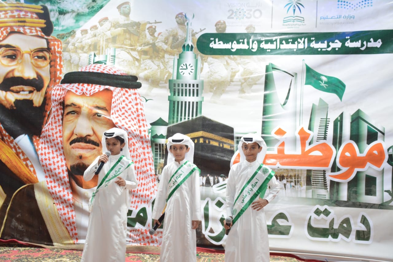 وشهد الاحتفال العديد من الفقرات واللوحات الفنية وكلمات مضيئه لرعاة الحفل إحتفاء بيوم الوطن الذي نظمته مدرسة جريبة الابتدائية والمتوسطة وشاركت به الابتدائية الثامنة للبنات بصبيا بالإضافة لمدرستي الحرف الابتدائية والجديين الابتدائية والمتوسطة.