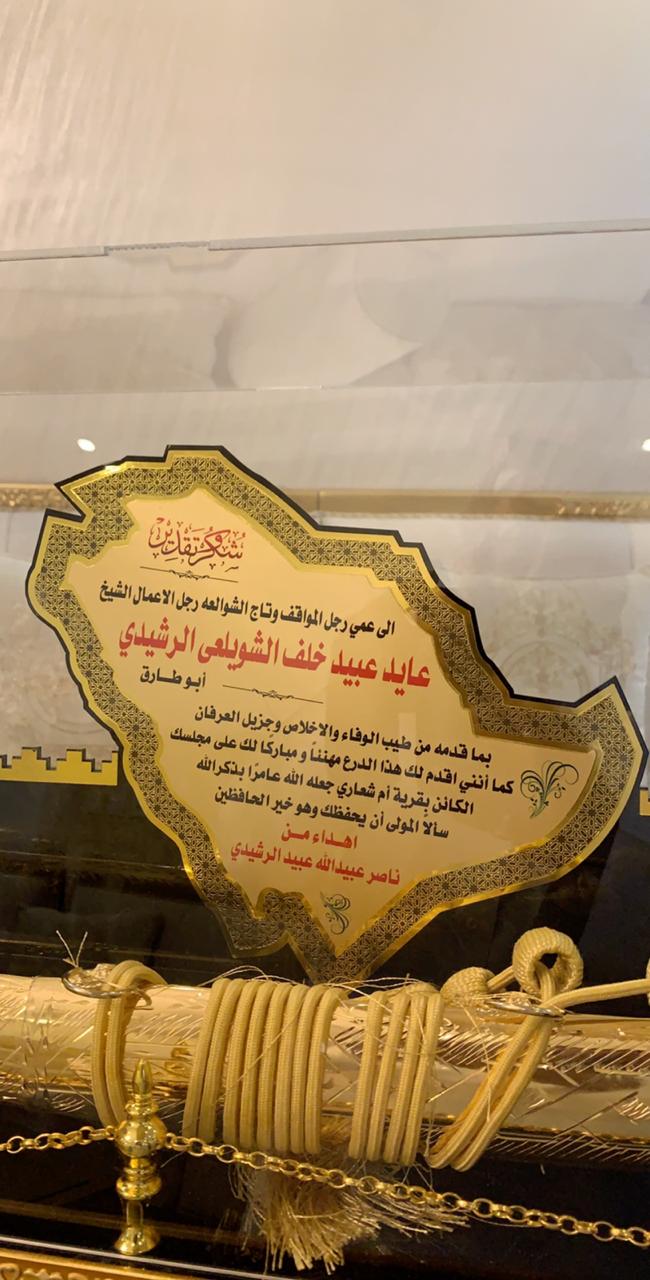 فقد تقدم جمع من الاهل والاصدقاء / لــ” عايد  بن عبيد بالدعوات الصادقة والمباركة وايضا قدموا له مجموعة من الهدايا الفاخرة التي تدل على عمق سعادتهم بهذا الديوان