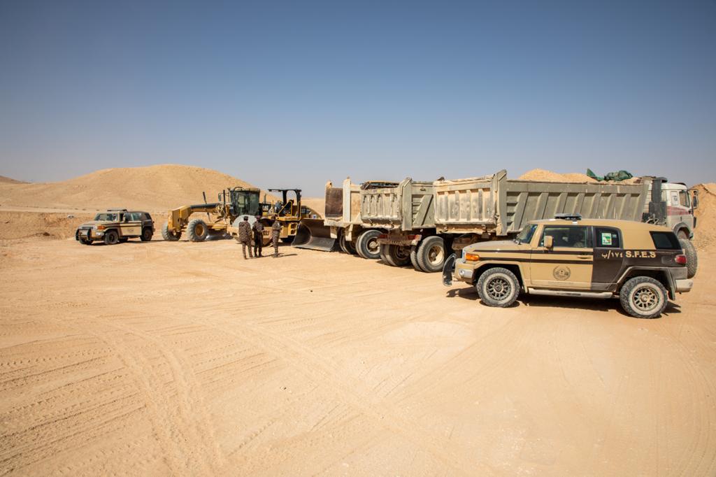 باشرت القوات الخاصة للأمن البيئي بلاغاً عن معدات تابعة لإحدى الشركات أثناء قيامها بنهل الرمال وتجريف التربة في منطقة الرياض، في مخالفة للأنظمة البيئية التي تمنع نقل التربة أو جرفها من دون تصريح.