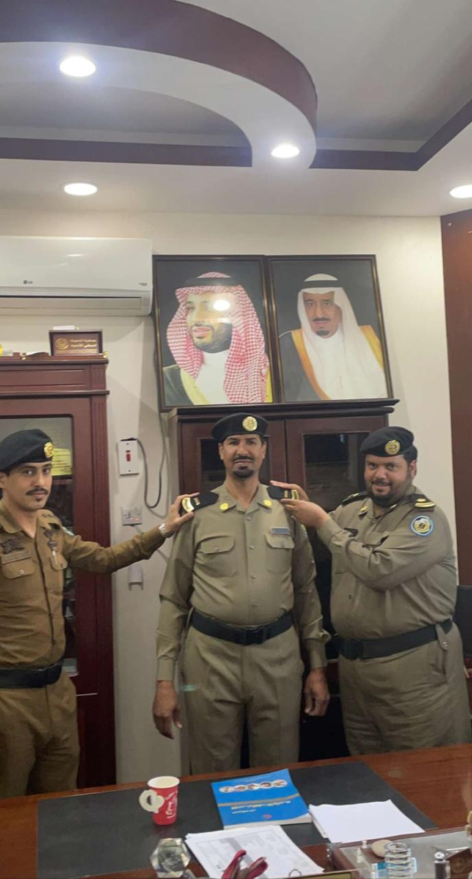 قلد قائد دوريات امن طريق حائل – المدينة – الرائد / عبدالله العبيداء الرقيب أول / فرحان زكيان السليمي الحربي رتبته الجديده “رئيس رقباء ”