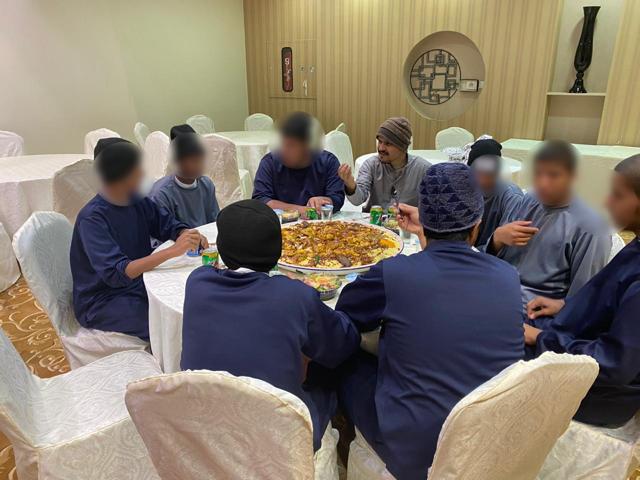 عقبها تناول الحضور مع النزلاء وجبة العشاء المعدة بذلك .