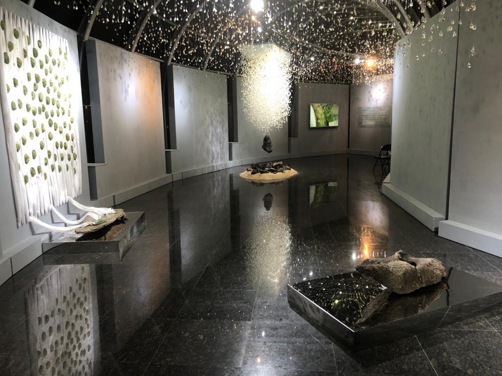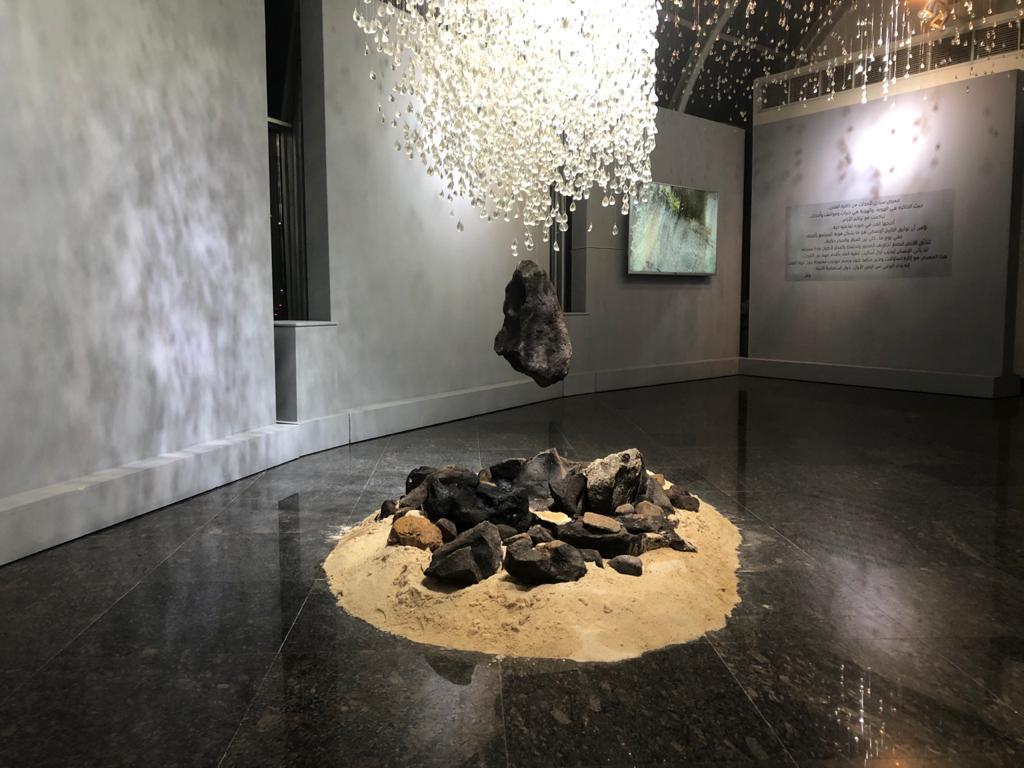 وأضاف ” الغامدي “: ” الادوات المستخدمة في المعرض تتمثل في الصخور المنحوتة والمتأثرة من مياه الامطار، إضافة الى استخدام 20 ألف قطرة ماء من مادة الايبوكسي والمعلقة بـ ١٥ ألف متر من الخيوط لوضع الزائر في مشهد أقرب الى الواقع، وشهد المعرض حضوراً لافتاً واكثر مما توقعت ” .