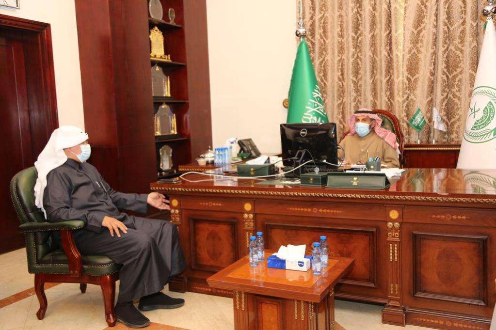 بحث محافظ القريات عبدالله بن صالح الجاسر ، مع مدير مدير عام فرع وزارة البيئة والمياه والزراعة بمنطقة الجوف المهندس عبدالله بن أحمد الأحمري ،عدداً من الموضوعات المتعلقة بأعمال ومشاريع والخدمات التي يتم تنفيذها بالمحافظة .