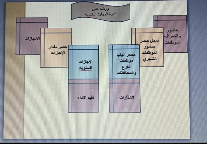 وضحت لهم أهمية وجود قسم الموارد البشرية وطريقة آلية العمل فيه ثم بينت طريقة عمل سجلات الحضور والأنصراف ومتابعتها حصر الغياب و الإجازات السنوية وطريقة حصر مقدار الإجازات الإنذارات و تقيم الأداء .