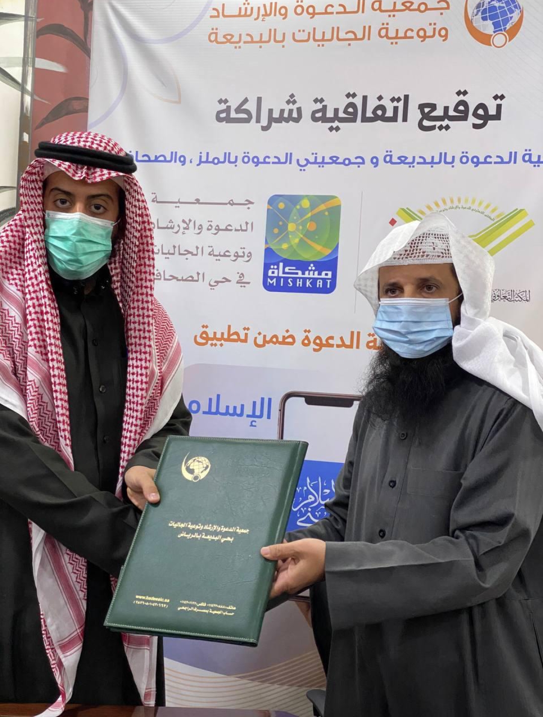وكانت جمعية الدعوة في البديعة وقعت أمس أتفاقيتي تعاون بين جمعيتي الملز والصحافة وقعها الرئيس التنفيذي لجمعية البديعة الشيخ فؤاد بن عبد الرحمن الرشيد، وفهد الخميس مسئول الجاليات في جمعية الصحافة، ومحمد الحاوي مدير الجاليات قي جمعية الملز.