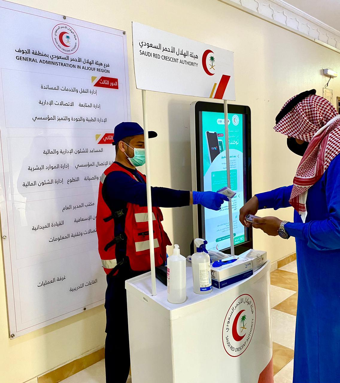 وجه سعادة مدير عام فرع هيئة الهلال الأحمر بمنطقة الجوف الدكتور ممدوح بن ناحي الرويلي بعدم دخول مبنى الفرع سواء من موظفين أو مراجعين إلا بعد التسجيل بتطبيق توكلنا وإبرازه.