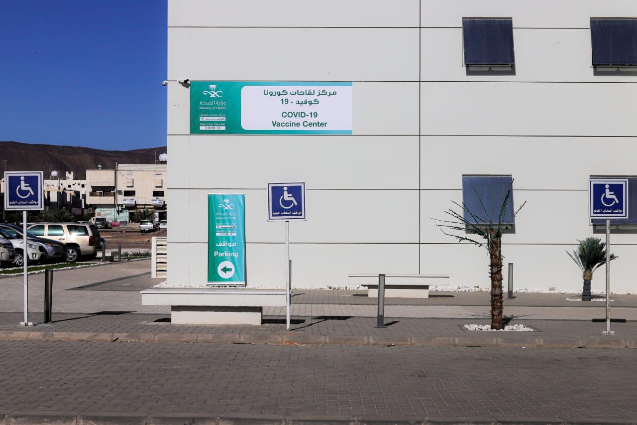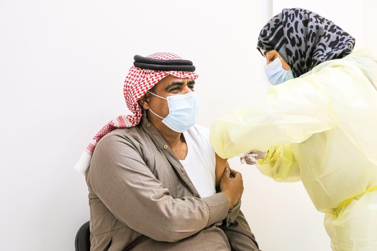 كما حصل أول مواطن على اللقاح في المركز ظهر اليوم .