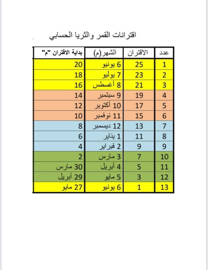 وللمعلومية أن اقتران جرم القمر وجرم الثريا لايكون هو الحساب، وإنما الحكم هو الاقتران الحسابي،