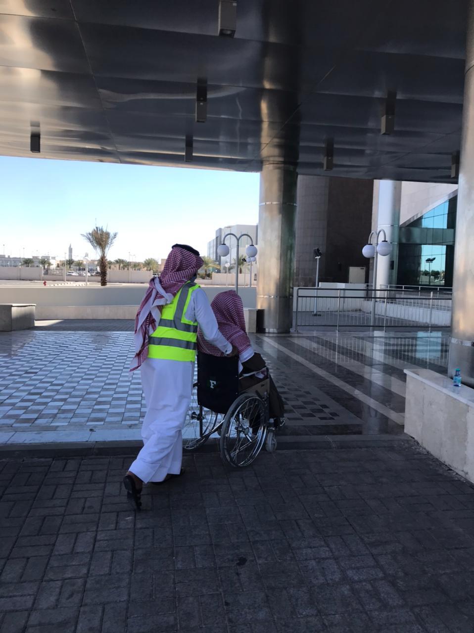 كما يشارك المتطوعون بخدمة دفع الكراسي المتحركة لكبار السن وذوي الاحتياجات الخاصة بما يضمن وصولهم للمركز بكل راحة وأمان .