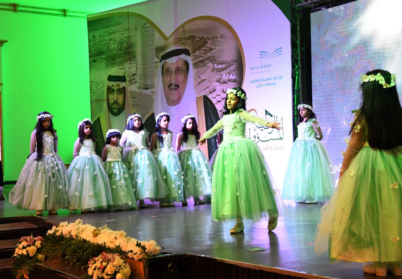 وتضمن الحفل العديد من الأناشيد الطلابية، وقصيدة شعرية و أوبريت بعنوان “المجد سلمان” وعرض مرئي يبرز التطور والنمو الذي شهده قطاع التعليم بالمملكة، وتكريم الجهات الراعية والداعمة والمتعاونة مع الإدارة.
