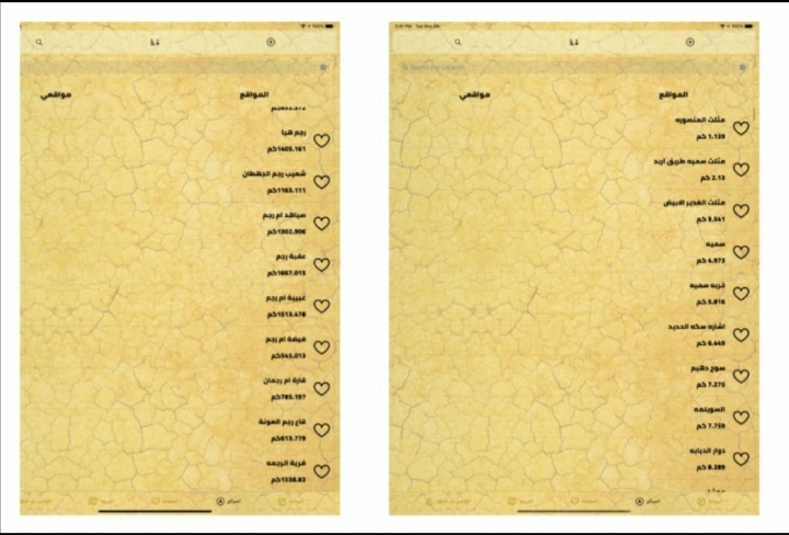 (الدليله للمواقع البريه)في دول مجلس التعاون الخليجي والمملكة العربية السعودية، وجاري العمل على إضافة عدد من التحديثات وتطوير وتزويد التطبيق بميزات ومتطلبات هامة تباعا ليصل الى الى ما يطمح الية كل من يعشق رحلات السفاري البرية ان شاء الله .